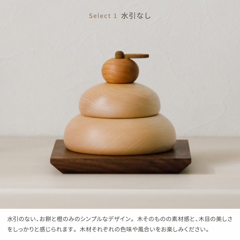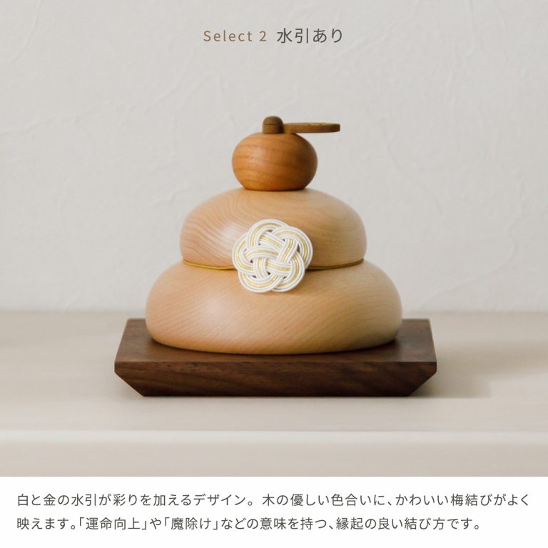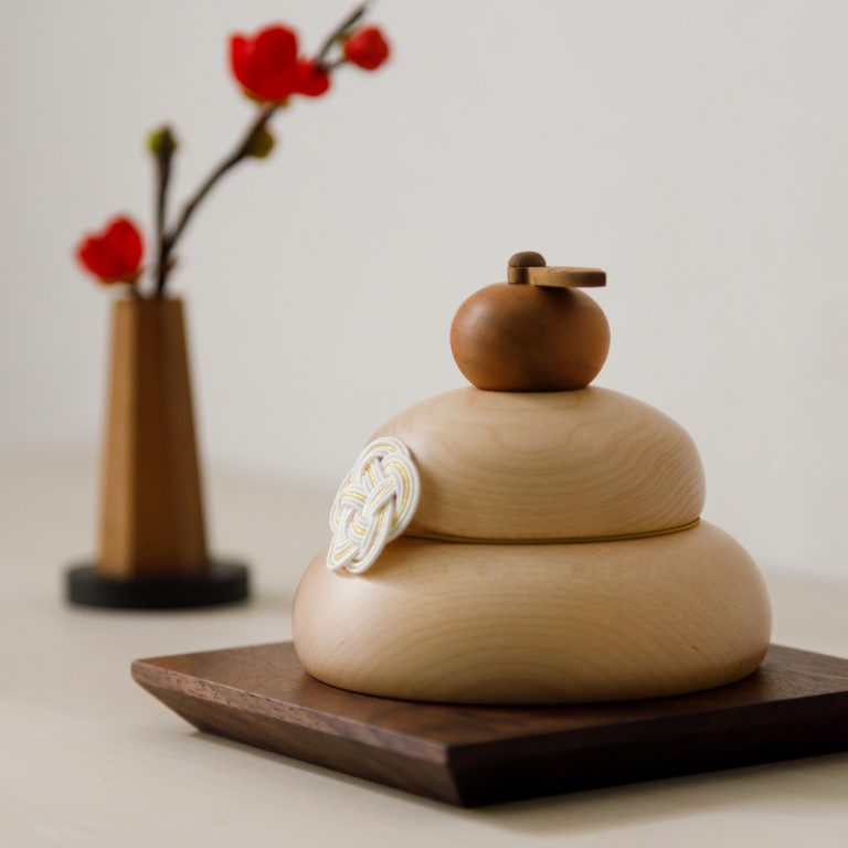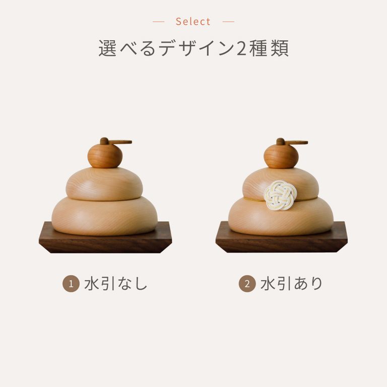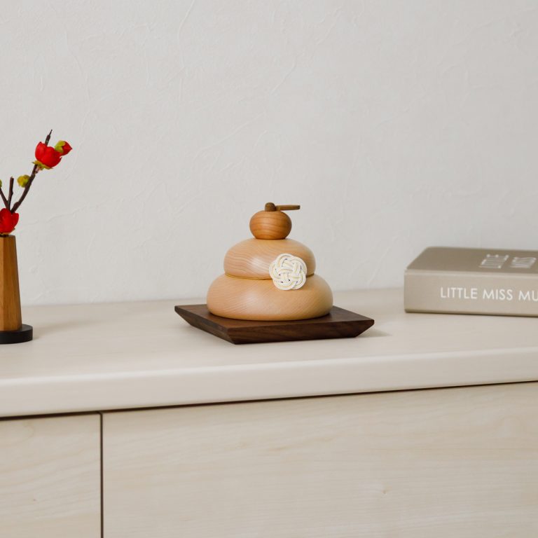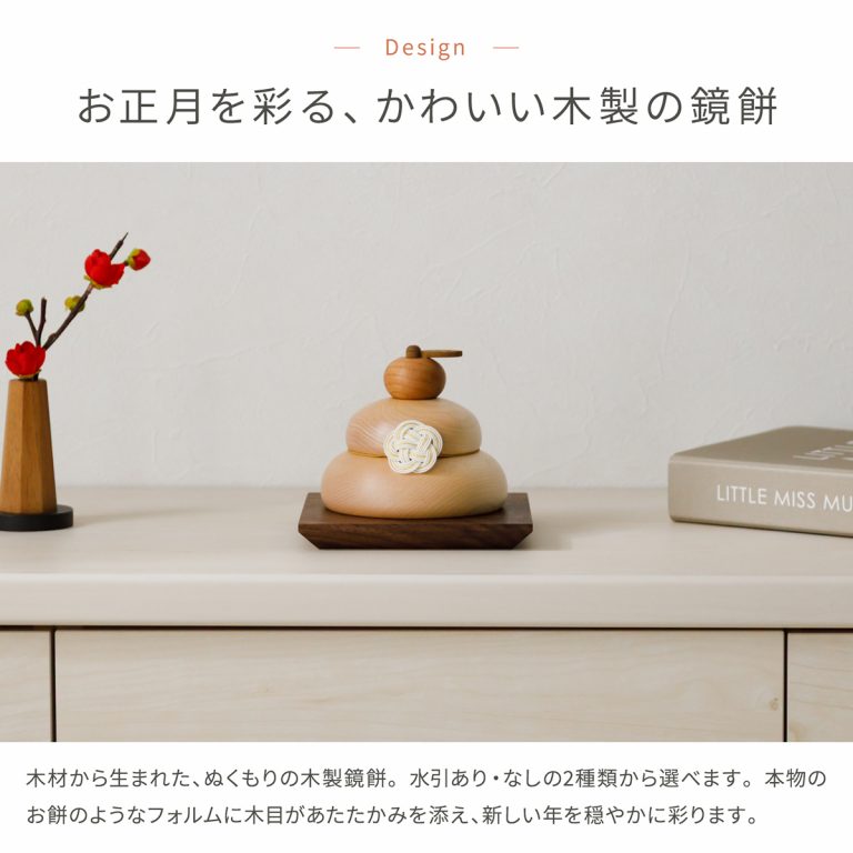 お正月に優しく華を添える、かわいい木製の鏡餅。デザインは2種類から選べます。丸いかたちと木の質感がモダンな雰囲気を演出する迎春飾りです。コンパクトで飾りやすく、ちょっとしたスペースで楽しむことができます。正月飾りとしてはもちろん、季節のインテリアとしても活躍。おしゃれなギフトとしてもおすすめです。
