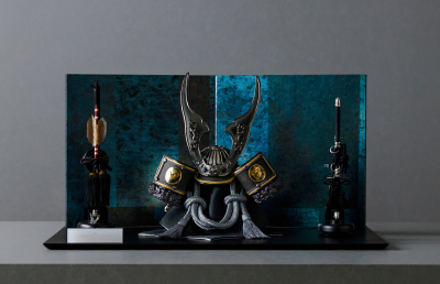 兜 伊達政宗公兜 -黒塗台 金屏風 平飾り-