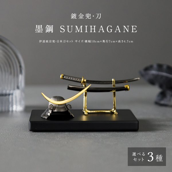 五月人形 兜飾り 平飾り 鍍金兜・刀 墨鋼 SUMIHAGANE