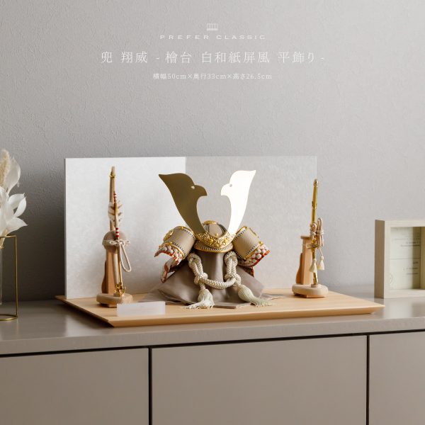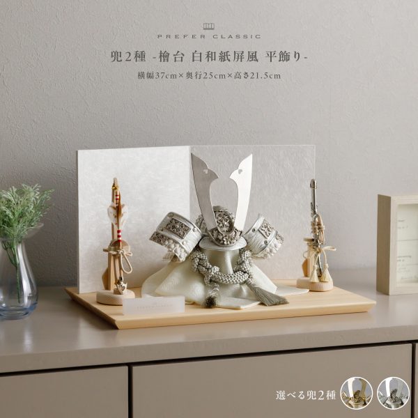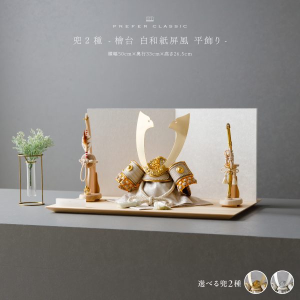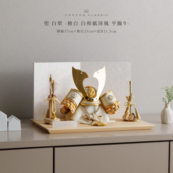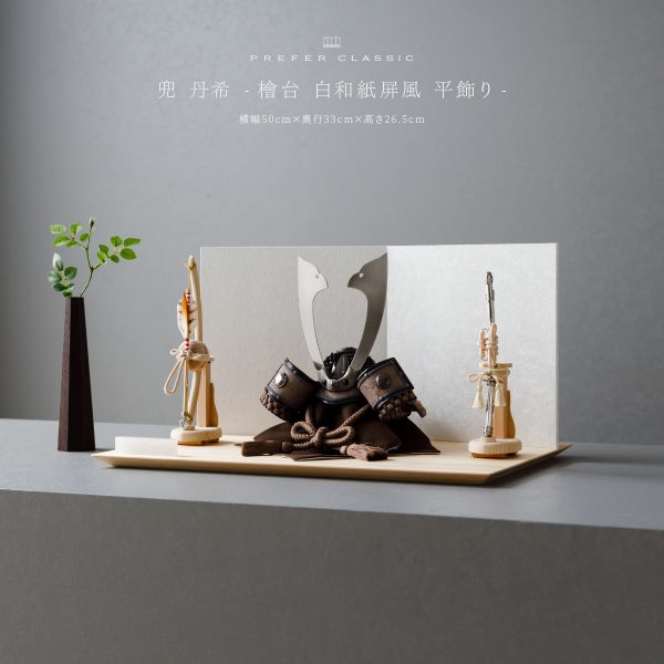 PREFER CLASSIC 五月人形[檜台 白和紙屏風 平飾り 弓太刀 白珠8号 丹希]
