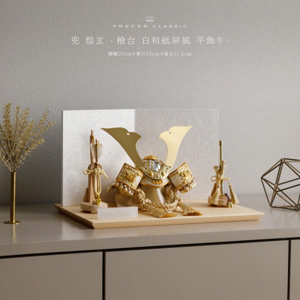 PREFER CLASSIC 五月人形[檜台 白和紙屏風 平飾り 弓太刀 白珠8号 煌稀 煌吏]