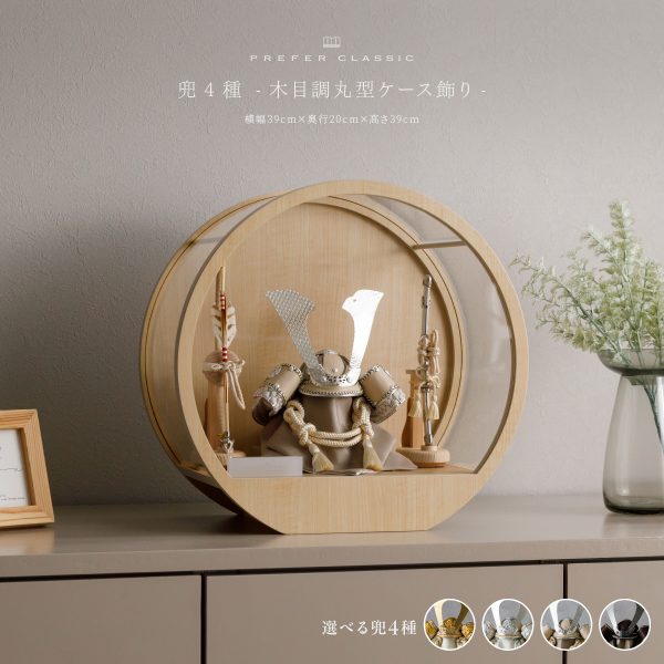 PREFER CLASSIC 五月人形[木目調丸型ケース飾り 弓太刀 白珠8号 金月 銀月 香色 黒鳶]