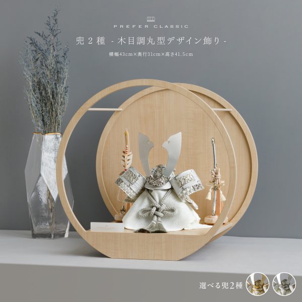 PREFER CLASSIC 五月人形[木目調丸型デザイン飾り 弓太刀 白珠8号 煌稀 煌吏]