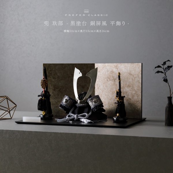 PREFER CLASSIC 五月人形[黒塗台 ブロンズ屏風 平飾り 弓太刀 KIYO7号 櫻曜]