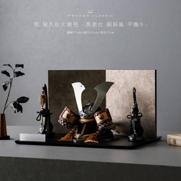 PREFER CLASSIC 五月人形[黒塗台 ブロンズ屏風 平飾り 弓太刀 黒龍5号 屋久杉大鍬兜]