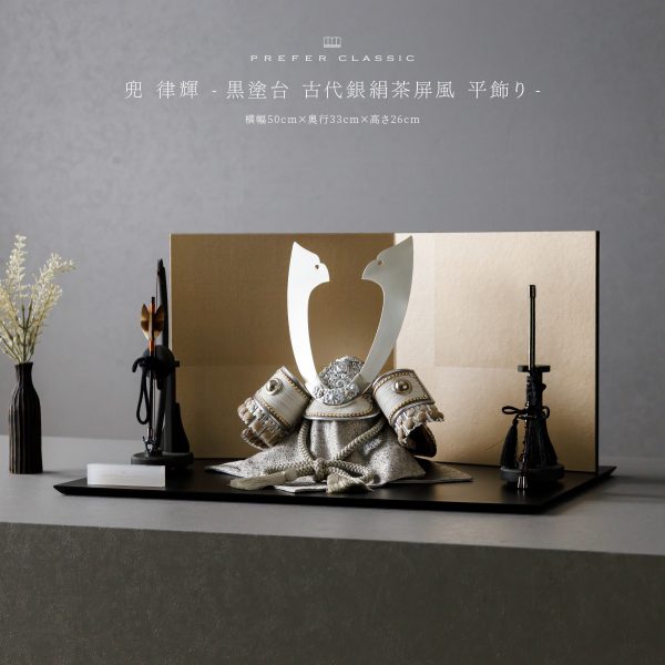 PREFER CLASSIC 五月人形[黒塗台 古代銀絹茶屏風 平飾り 弓太刀 KIYO 律輝]