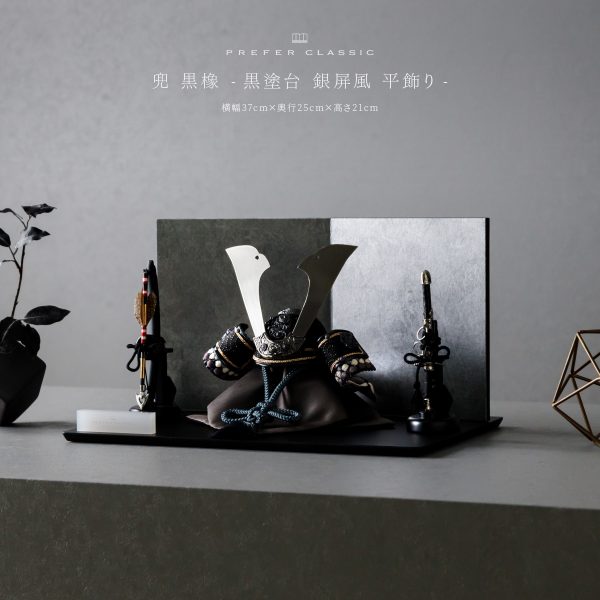 PREFER CLASSIC 五月人形[黒塗台 シルバー屏風 平飾り 弓太刀 黒龍5号 黒橡]