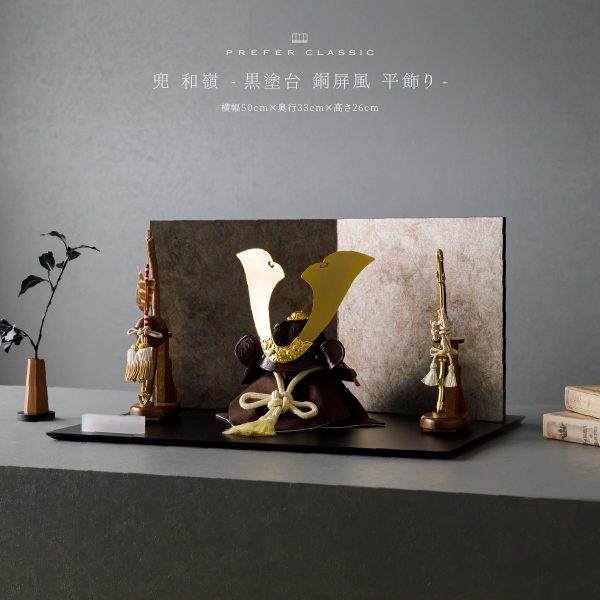 PREFER CLASSIC 五月人形[黒塗台 ブロンズ屏風 平飾り 弓太刀 大和 和嶺]