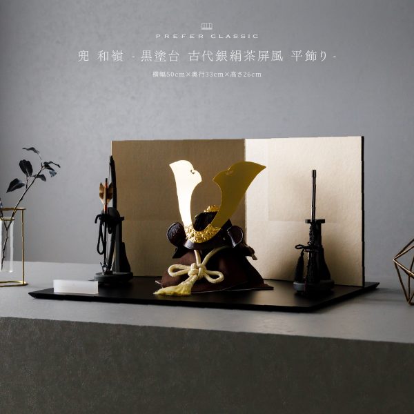 PREFER CLASSIC 五月人形[黒塗台 ベージュ布屏風 平飾り 弓太刀 KIYO5号 黒橡]