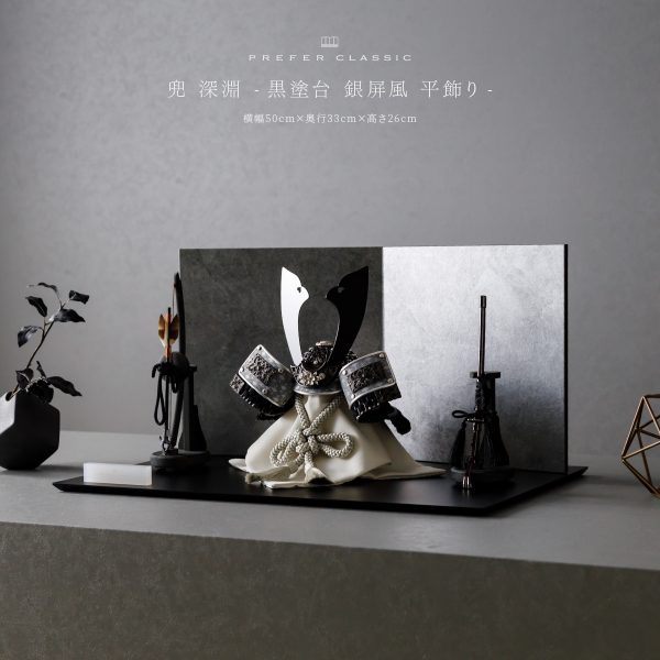 PREFER CLASSIC 五月人形[黒塗台 シルバー屏風 平飾り 弓太刀 KIYO7号 銀小札黒 伊達]