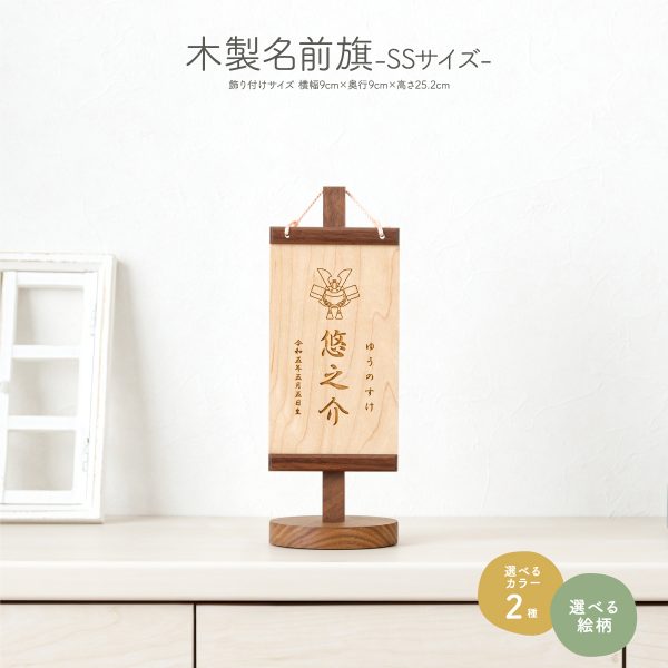 木製名前旗(SSサイズ) 選べる35種類のデザインと2種類のカラー