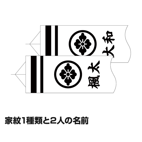 ワタナベ鯉のぼり4m以上に家紋1種類と2人の名前を染色※文字方向指定不可