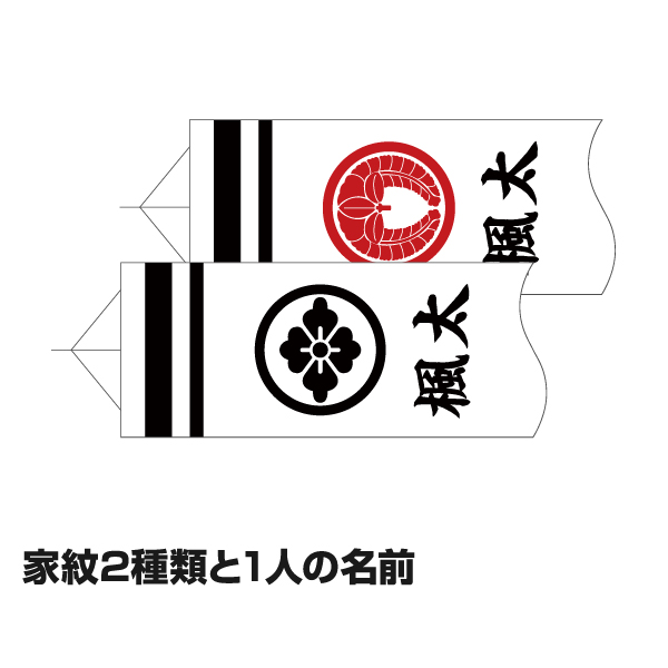 ワタナベ鯉のぼり3m用に家紋1種類と2人の名前を染色※文字方向指定不可