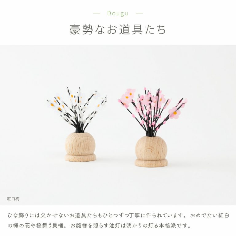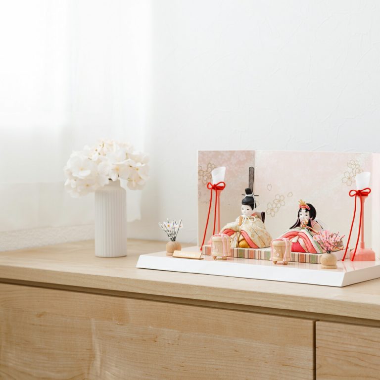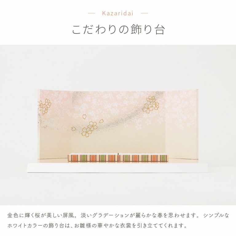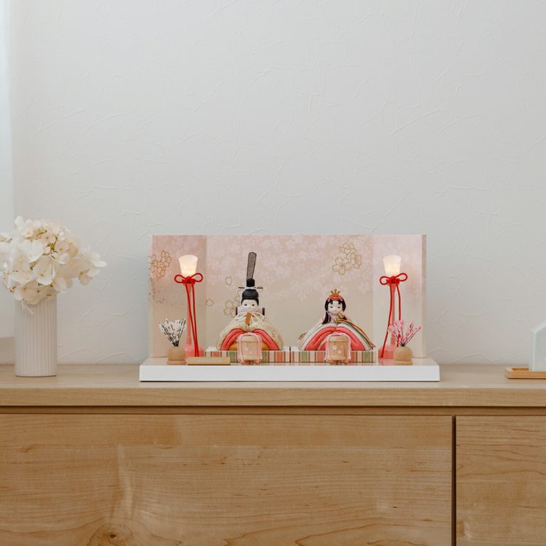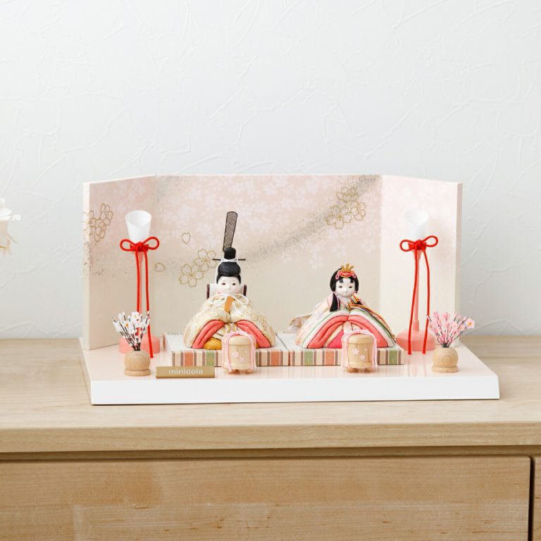 あどけない表情に癒される、minicolaの手のひらサイズの小さい雛人形。白塗のモダンな飾り台や、春らしい桜の舞う屏風が、かわいいお雛様を華やかに彩ります。優しい雰囲気のミニコラのひな飾りはおめでたい日にぴったり。初節句はもちろん、プレゼントにもおすすめです。コンパクトかつおしゃれなおひな様なので、可愛いインテリアとしてもお楽しみいただけます。