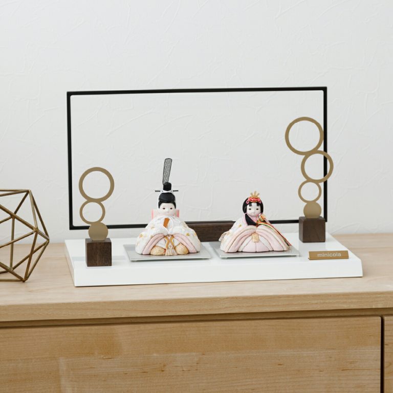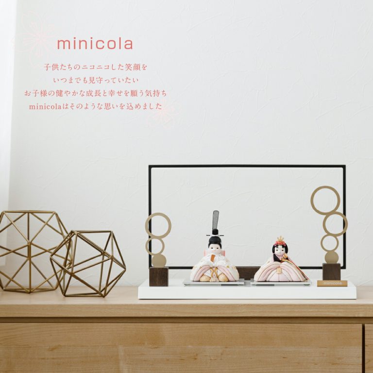 おぼこ顔がかわいい、minicolaの手のひらサイズの小さい雛人形。スクエア台を合わせたモダンな白塗飾り台が、美しいお雛様を一層引き立てます。おしゃれな雰囲気のミニコラのひな飾りは、おめでたい初節句にぴったり。プレゼントにもおすすめです。飾る場所を選ばない可愛いコンパクトサイズなので、インテリアとしてもお楽しみいただけるおひな様です。