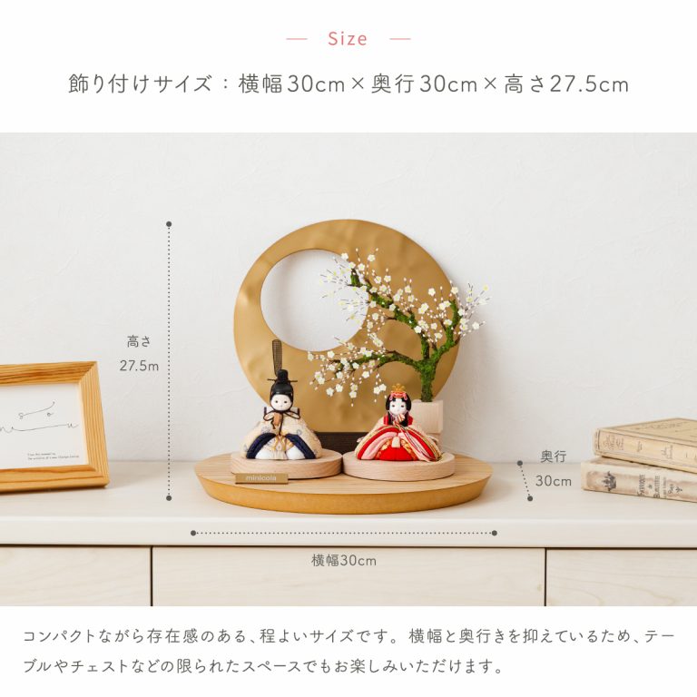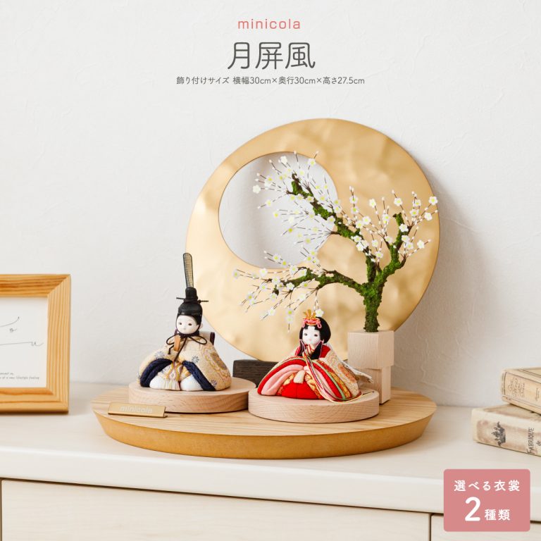 TOP > 雛人形 > サイズ奥行 > ひな人形 minicola 月屏風 選べるお衣裳2種類