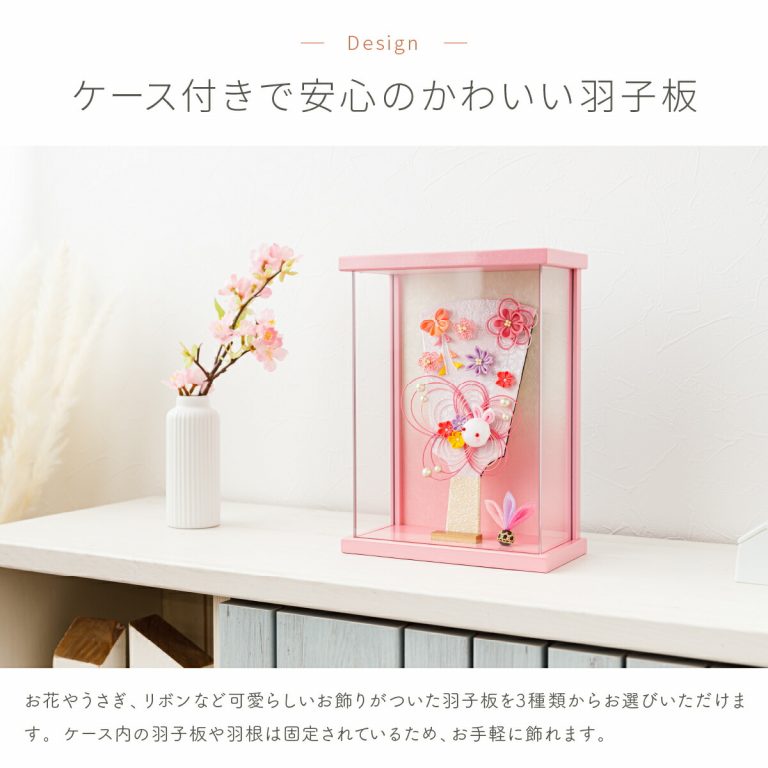 ケース飾り※羽子板や羽根は、ケースへ固定しております。