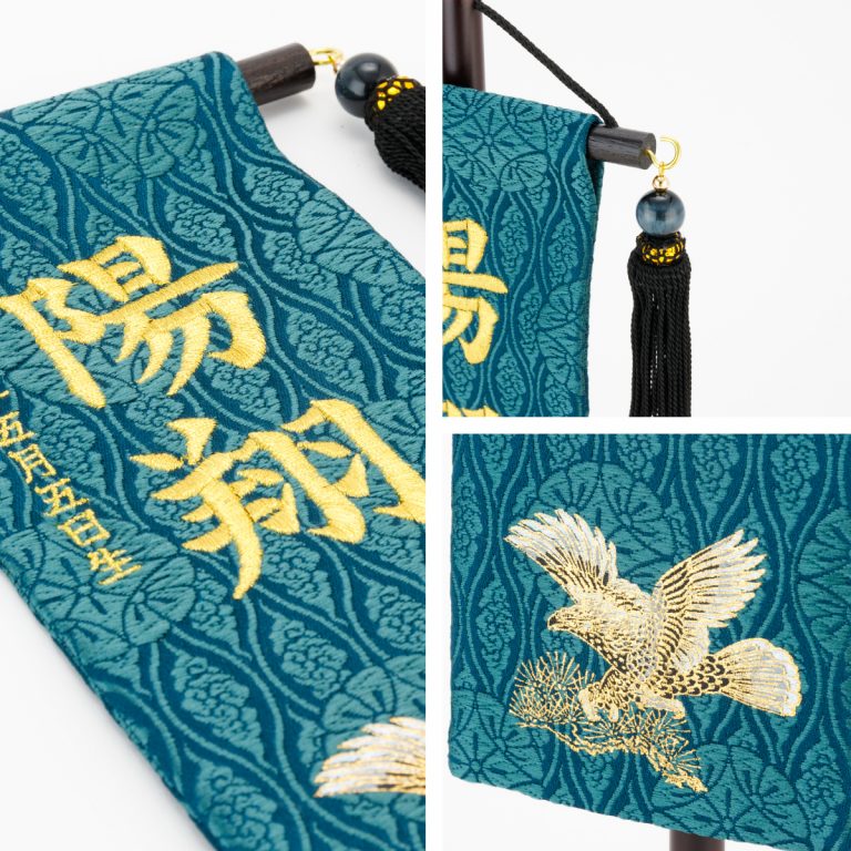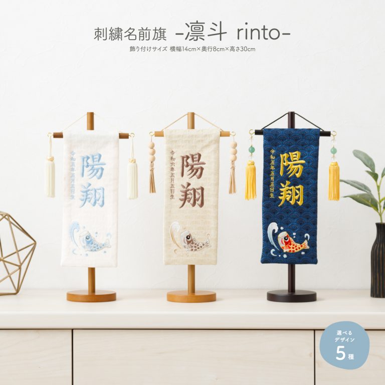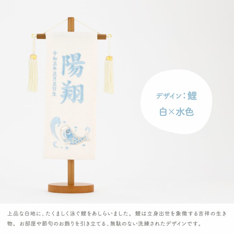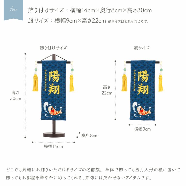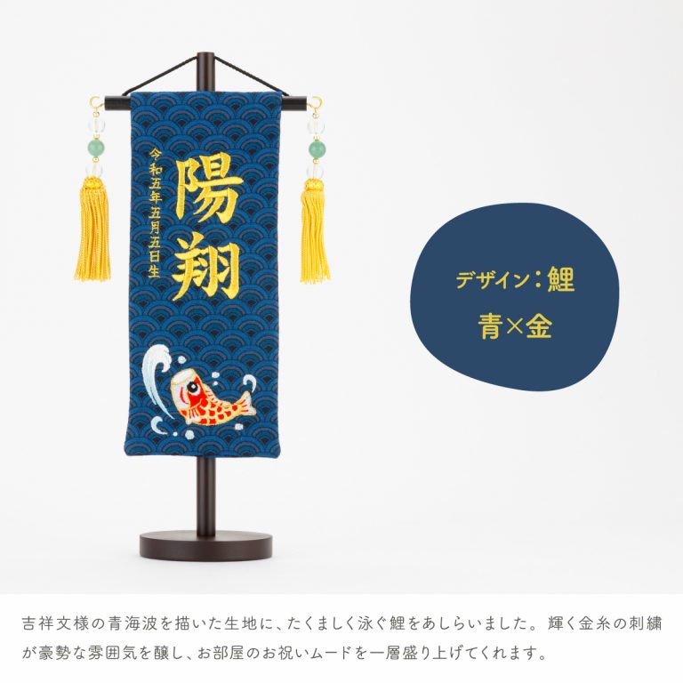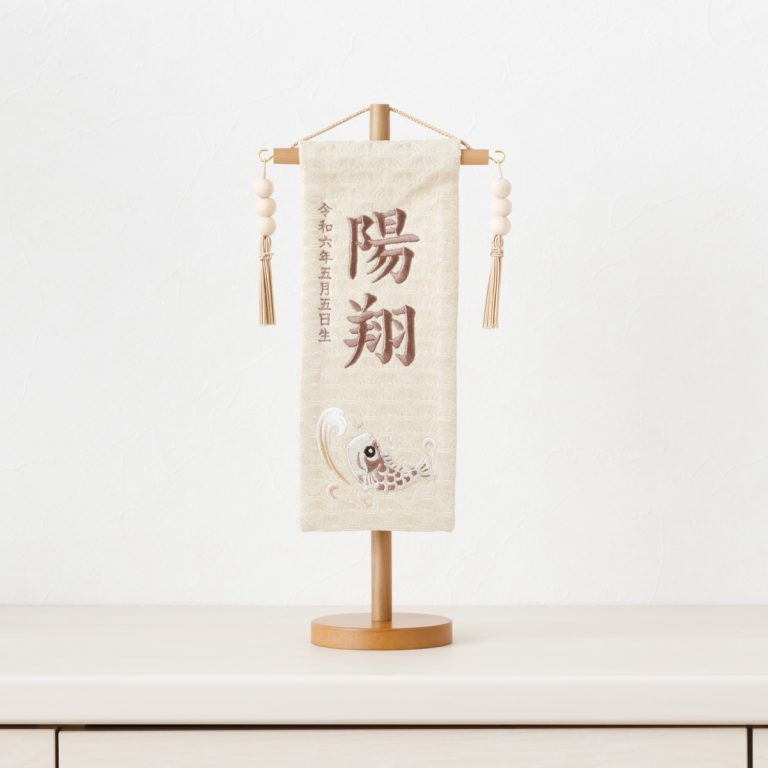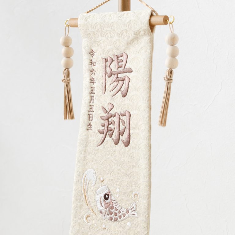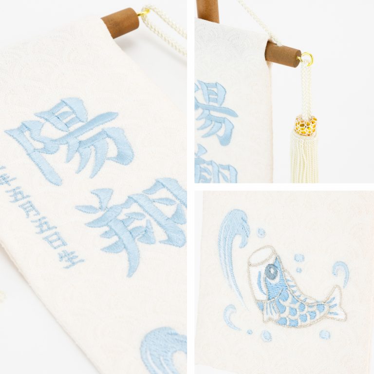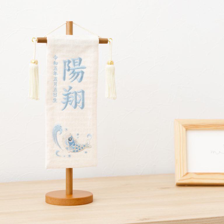 ※本商品は織物(布生地)にお名前を刺繍する商品です。刺繍加工商品は、お入れする文字の形状や、生地の状況などにより縮みやずれなどが生じる事が予想されます。刺繍入れされた名前旗は、全て検品をした上で良品として認められた商品をお送りしていますので、文字のバランス・書き順の指定などを理由とした交換は一切お受け出来ません。すべてのお客様にお願いしている事になりますので、予めご了承いただきますようお願い申し上げます。