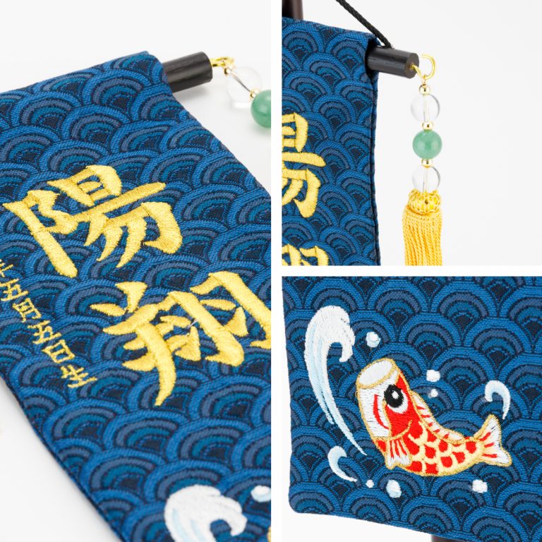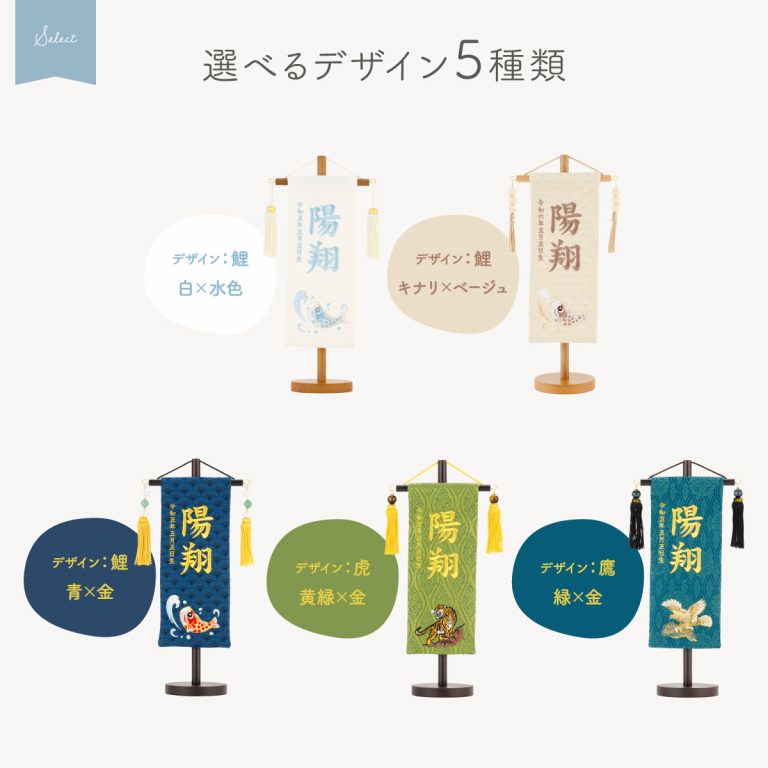 文字色は、ご購入いただいた鯉のぼりの吹流しの基本色でお入れいたします。 基本色につきましては、各鯉のぼりの商品ページにてご確認ください。