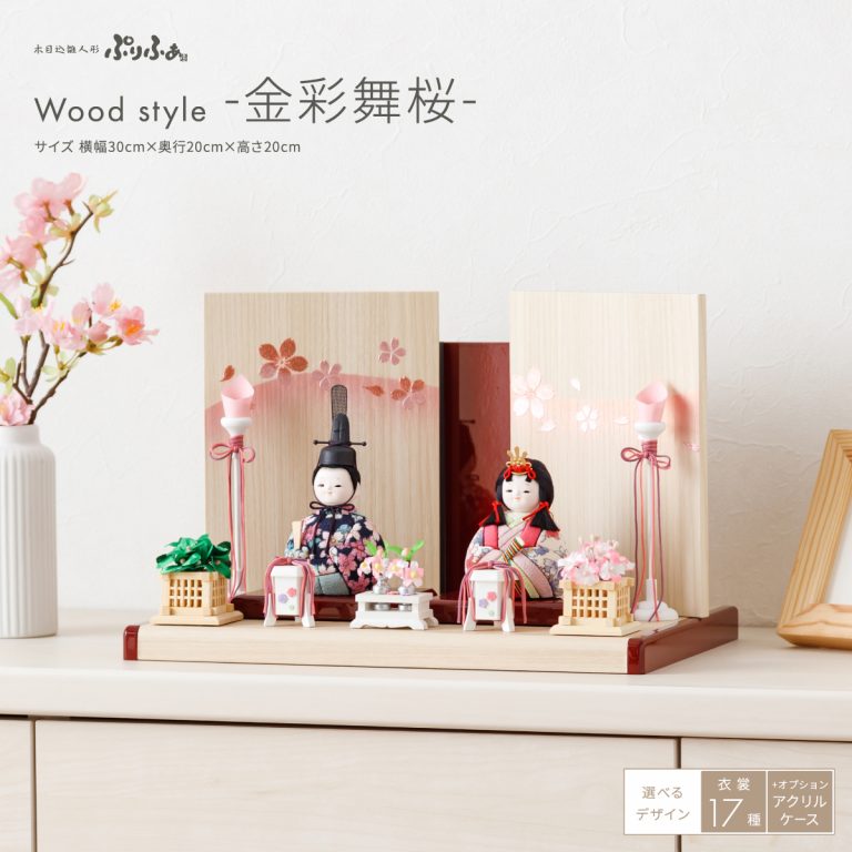 木目込み雛人形ぷりふあ 親王飾り Wood style -金彩舞桜-