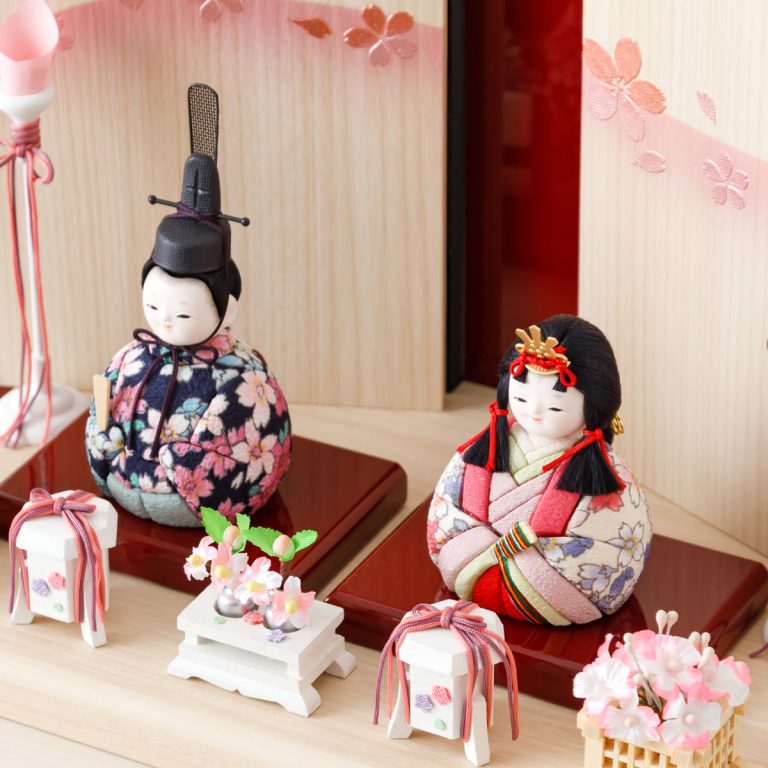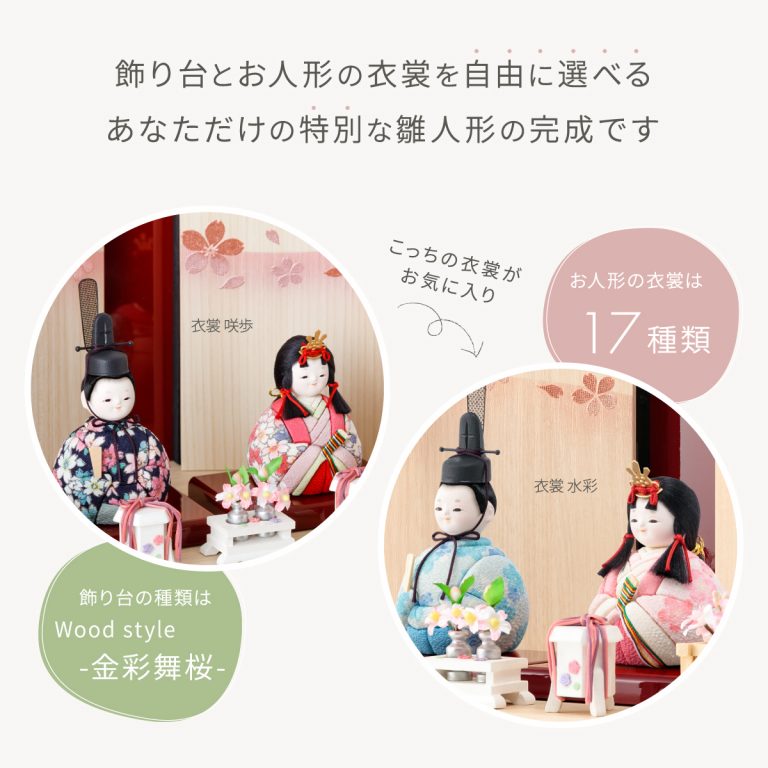 TOP > 雛人形 > ブランド > 木目込み雛人形ぷりふあ 親王飾り Wood style -金彩舞桜-