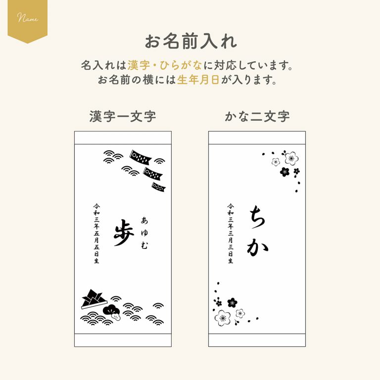 ※お名前・生年月日の文字数や、ふりがなの有無によって配置のバランスが変わります。