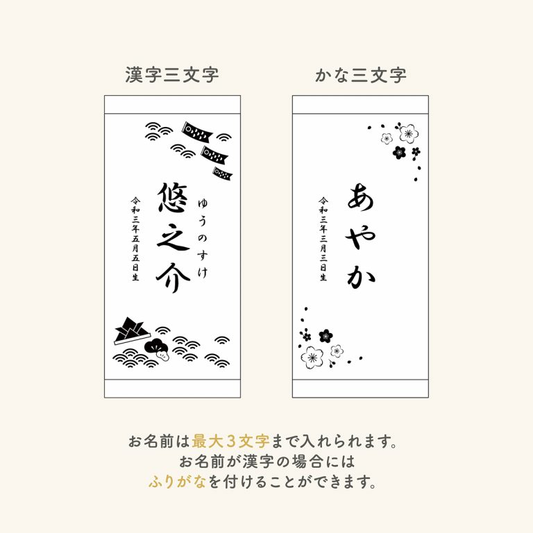 ※お名前・生年月日の文字数や、ふりがなの有無によって配置のバランスが変わります。