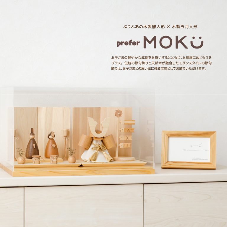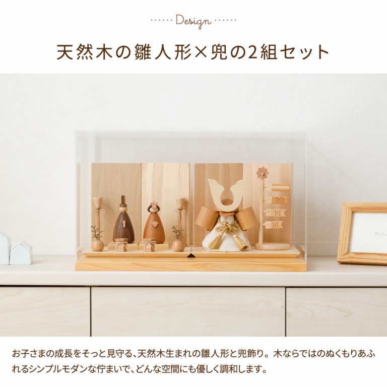天然木で作られた、ナチュラルモダンな雛人形と五月人形。双子や兄妹にぴったりの、prefer MOKUの木製おひな様と兜飾りのセットです。おしゃれなインテリアのように空間に溶け込む佇まい。ケース飾りはお手入れ簡単です。雛祭りや端午の節句、かわいいお子さまの初節句やお祝いギフトにもおすすめです。