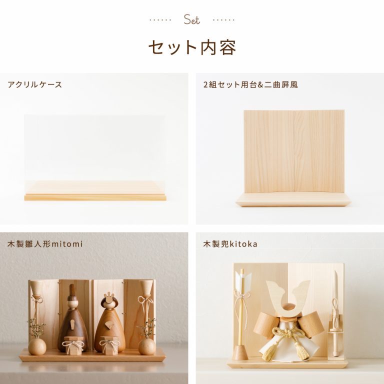 2組セット prefer MOKU 木製雛人形mitomi×木製兜kitoka ケース飾り