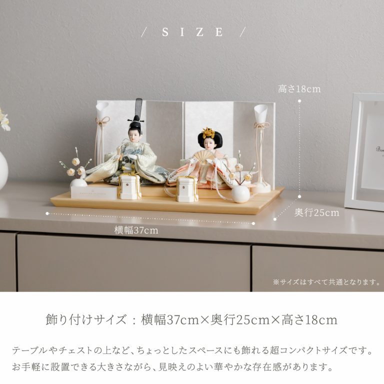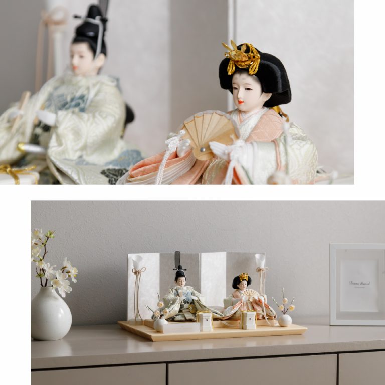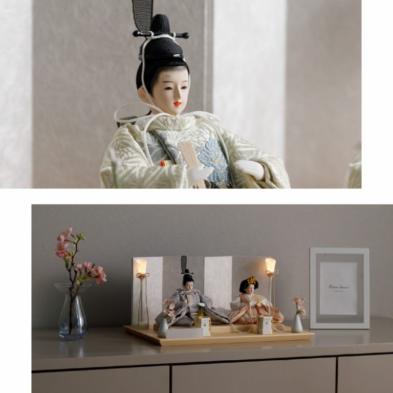 人形のお顔、飾り台、お道具まですべてにこだわり抜いて制作した、preferプロデュースの雛人形。熟練の職人たちがその技術を惜しみなく注いだ、本格派かつ高級志向のハイグレードなおひな様です。流行に左右されないシンプルモダンなスタイルのひな飾りは、時代を超えてどんな日の雛祭りにも華を添えます。衣裳着雛人形の美しい着姿を楽しめる親王飾り。かわいいお顔のお殿様とお姫様が優しく微笑みます。掌に収まるほどの極々小サイズ。どんな場所でも楽しめる大きさながら、凛とした存在感を放ちます。美しく品のあるお衣裳は、おめでたい日の雰囲気をいっそう盛り上げてくれるでしょう。飾り台には肌目の美しい檜(ヒノキ)の台座を使用。趣深い白の四曲屏風と共に、ひな人形のお衣裳を引き立てます。組立て不要な平飾りタイプは設置もお手軽。繊細で美しいお道具もセットになり、華やかかつ豪華な雛飾りに仕上げました。雛人形を照らす可愛い油灯はコードレス式。女の子の初節句のお祝いやギフトにおすすめのおひな様です。