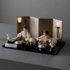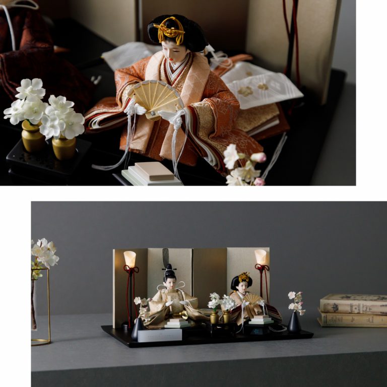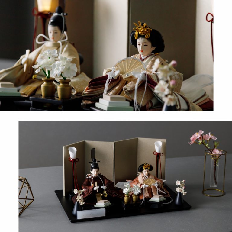 人形のお顔、飾り台、お道具まですべてにこだわり抜いて制作した、preferプロデュースの雛人形。熟練の職人たちがその技術を惜しみなく注いだ、本格派かつ高級志向のハイグレードなおひな様です。流行に左右されないシンプルモダンなスタイルのひな飾りは、時代を超えてどんな日の雛祭りにも華を添えます。衣裳着雛人形の美しい着姿を楽しめる親王飾り。かわいいお顔のお殿様とお姫様が優しく微笑みます。掌に収まるほどの極々小サイズ。どんな場所でも楽しめる大きさながら、凛とした存在感を放ちます。上品な艶と色合いが美しい人絹生地のお衣裳は、おめでたい日の雰囲気をいっそう盛り上げてくれるでしょう。飾り台には主役のお人形が映える黒一色の台座を使用。華やかな金の四曲屏風と共に、ひな人形のお衣裳を引き立てます。組立て不要な平飾りタイプは設置もお手軽。繊細で美しいお道具もセットになり、華やかかつ豪華な雛飾りに仕上げました。雛人形を照らす可愛い油灯はコードレス式。女の子の初節句のお祝いやギフトにおすすめのおひな様です。