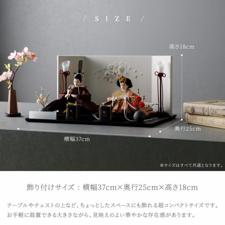 ・男雛:横幅16cm×奥行15cm×高さ15.5cm・女雛:横幅16cm×奥行15cm×高さ11cm