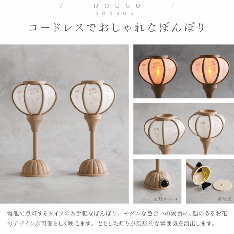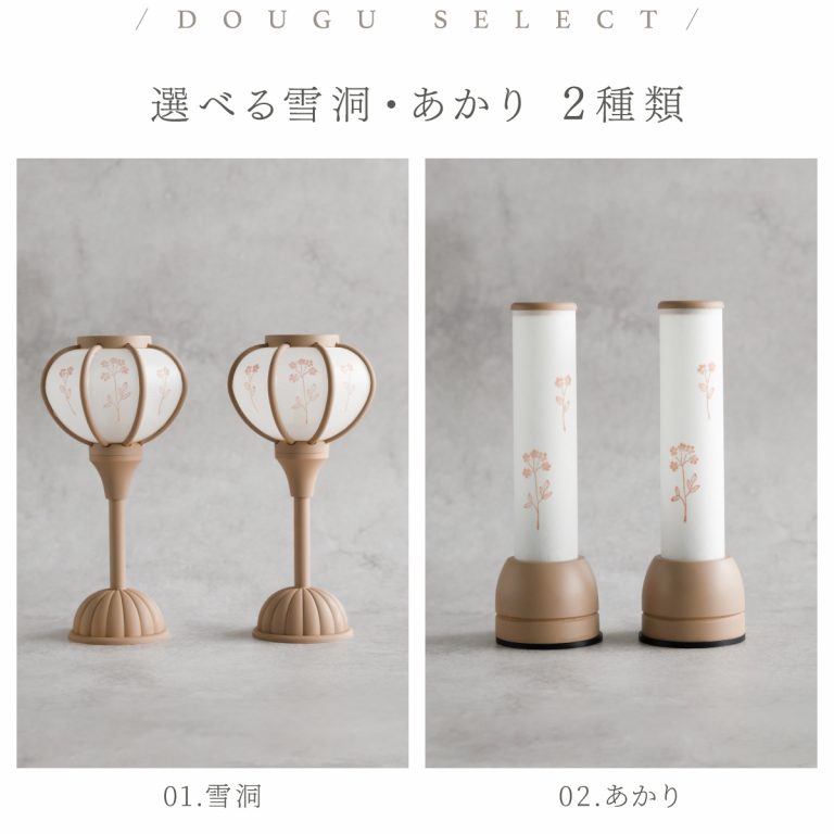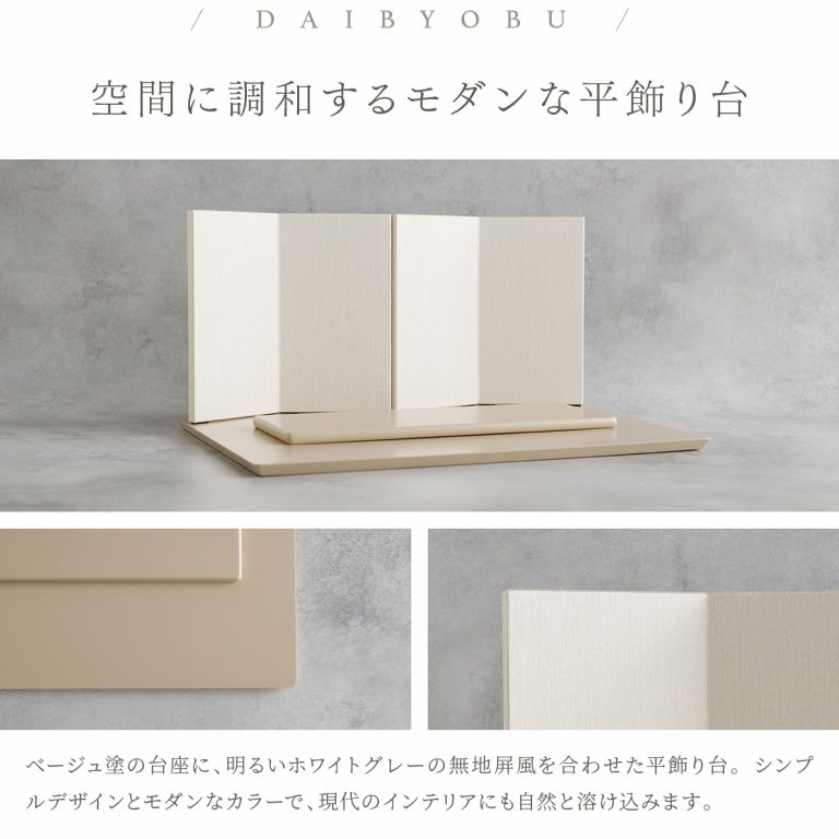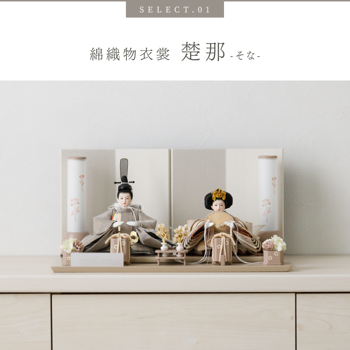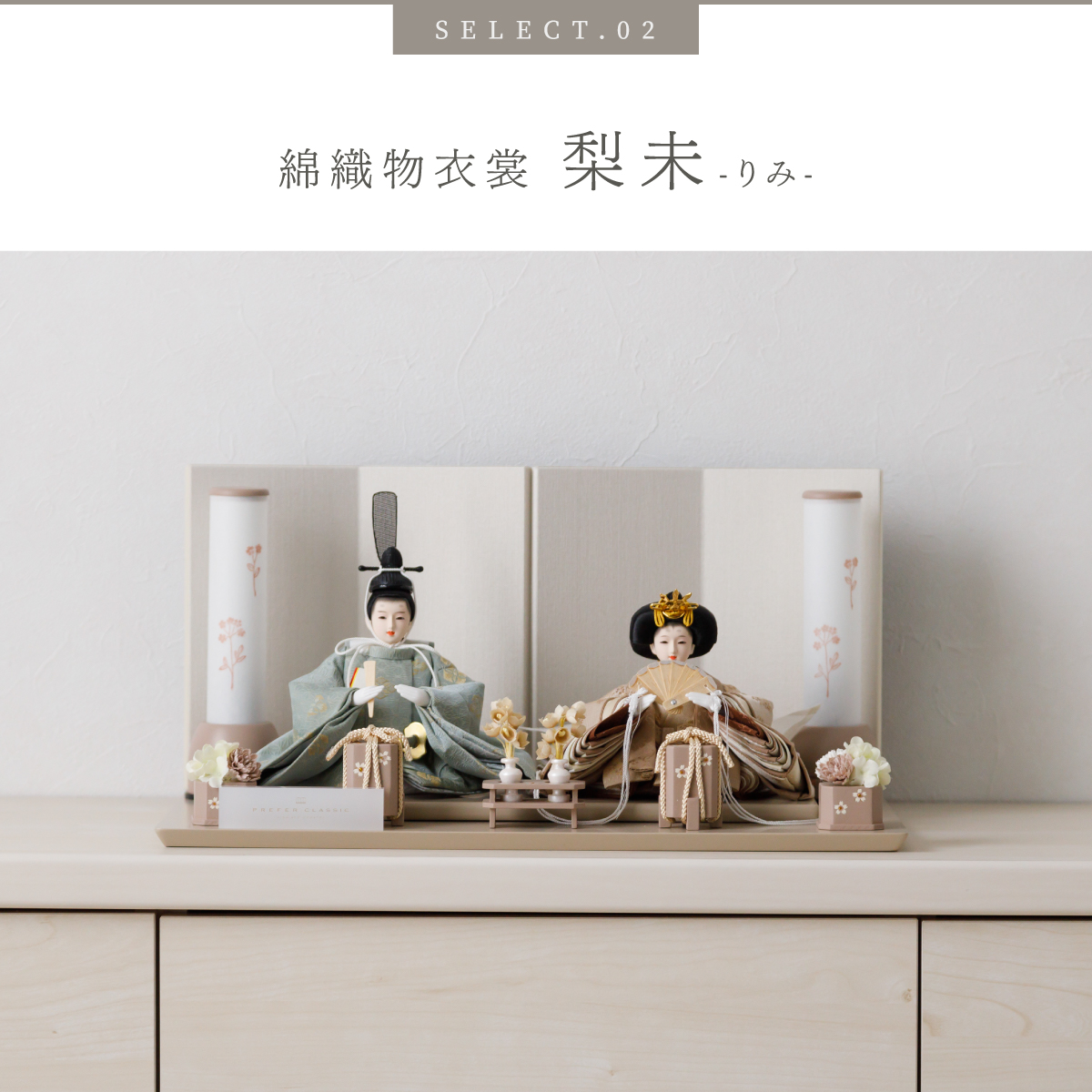 PREFER CLASSIC ひな人形 [ベージュ台 ホワイトグレー屏風 平飾り お道具付 貝桶花 人形極々小サイズ 選べる綿織物衣裳2種類 楚那 梨未 選べる灯り2種 雪洞 行灯]