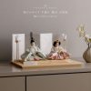 人形のお顔、飾り台、お道具まですべてにこだわり抜いて制作した、preferプロデュースの雛人形。熟練の職人たちがその技術を惜しみなく注いだ、本格派かつ高級志向のハイグレードなおひな様です。流行に左右されないシンプルモダンなスタイルのひな飾りは、時代を超えてどんな日の雛祭りにも華を添えます。衣裳着雛人形の美しい着姿を楽しめる親王飾り。かわいいお顔のお殿様とお姫様が優しく微笑みます。掌に収まるほどの極々小サイズ。どんな場所でも楽しめる大きさながら、凛とした存在感を放ちます。煌めく金糸を用いた金襴衣裳は、おめでたい日の雰囲気をいっそう盛り上げてくれるでしょう。飾り台には肌目の美しい檜(ヒノキ)の台座を使用。趣深い白の四曲屏風と共に、ひな人形のお衣裳を引き立てます。組立て不要な平飾りタイプは設置もお手軽。あえてお道具を配さないシンプルなスタイルの雛飾りは、お人形そのものの美しさを際立たせます。雛人形を照らす可愛い油灯はコードレス式。女の子の初節句のお祝いやギフトにおすすめのおひな様です。
