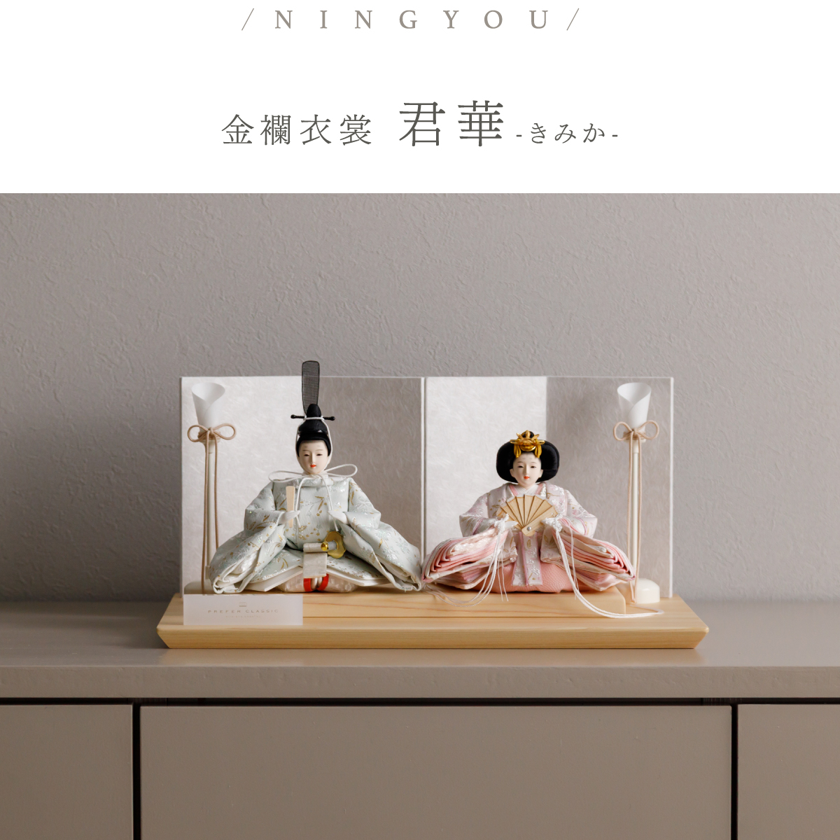 PREFER CLASSIC ひな人形 [檜台 白屏風 平飾り 油灯 人形極々小サイズ 金襴衣裳 君華]