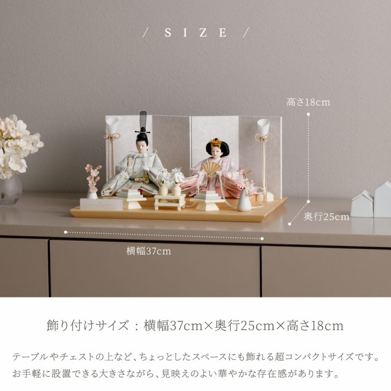・男雛:横幅14.5cm×奥行12.5cm×高さ15.5cm・女雛:横幅14.5cm×奥行14.5cm×高さ11.5cm