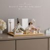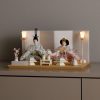 人形のお顔、飾り台、お道具まですべてにこだわり抜いて制作した、preferプロデュースの雛人形。熟練の職人たちがその技術を惜しみなく注いだ、本格派かつ高級志向のハイグレードなおひな様です。流行に左右されないシンプルモダンなスタイルのひな飾りは、時代を超えてどんな日の雛祭りにも華を添えます。衣裳着雛人形の美しい着姿を楽しめる親王飾り。かわいいお顔のお殿様とお姫様が優しく微笑みます。掌に収まるほどの極々小サイズ。どんな場所でも楽しめる大きさながら、凛とした存在感を放ちます。煌めく金糸を用いた金襴衣裳は、おめでたい日の雰囲気をいっそう盛り上げてくれるでしょう。飾り台には肌目の美しい檜(ヒノキ)の台座を使用。趣深い白の四曲屏風と共に、ひな人形のお衣裳を引き立てます。組立て不要な平飾りタイプは設置もお手軽。繊細で美しいお道具もセットになり、華やかかつ豪華な雛飾りに仕上げました。雛人形を照らす可愛い油灯はコードレス式。女の子の初節句のお祝いやギフトにおすすめのおひな様です。