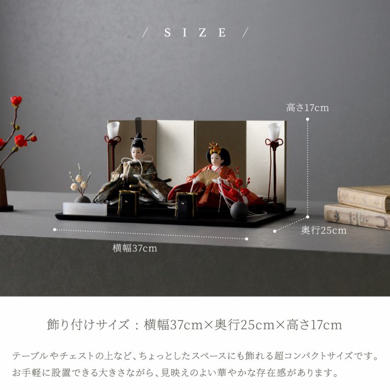 ・男雛:横幅14cm×奥行13cm×高さ16cm・女雛:横幅15.5cm×奥行14cm×高さ12cm