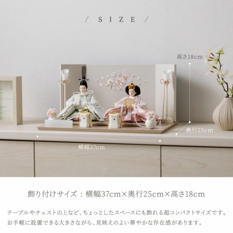 ・男雛:横幅14.5cm×奥行12.5cm×高さ15.5cm・女雛:横幅14.5cm×奥行14.5cm×高さ11.5cm
