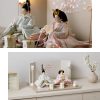 人形のお顔、飾り台、お道具まですべてにこだわり抜いて制作した、preferプロデュースの雛人形。熟練の職人たちがその技術を惜しみなく注いだ、本格派かつ高級志向のハイグレードなおひな様です。流行に左右されないシンプルモダンなスタイルのひな飾りは、時代を超えてどんな日の雛祭りにも華を添えます。衣裳着雛人形の美しい着姿を楽しめる親王飾り。かわいいお顔のお殿様とお姫様が優しく微笑みます。掌に収まるほどの極々小サイズ。どんな場所でも楽しめる大きさながら、凛とした存在感を放ちます。煌めく金糸を用いた金襴衣裳は、おめでたい日の雰囲気をいっそう盛り上げてくれるでしょう。飾り台にはインテリアに合わせやすいベージュの台座を使用。繊細な刺繍を施した屏風と共に、ひな人形のお衣裳を引き立てます。平飾りタイプは組立ても不要でお手軽。繊細で美しいお道具もセットになり、華やかかつ豪華な雛飾りに仕上げました。雛人形を照らす可愛い油灯はコードレス式。女の子の初節句のお祝いやギフトにおすすめのおひな様です。