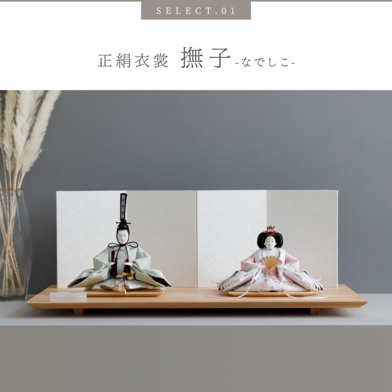PREFER CLASSIC ひな人形 [檜台 白屏風 平飾り 人形大サイズ 正絹衣裳 撫子]
