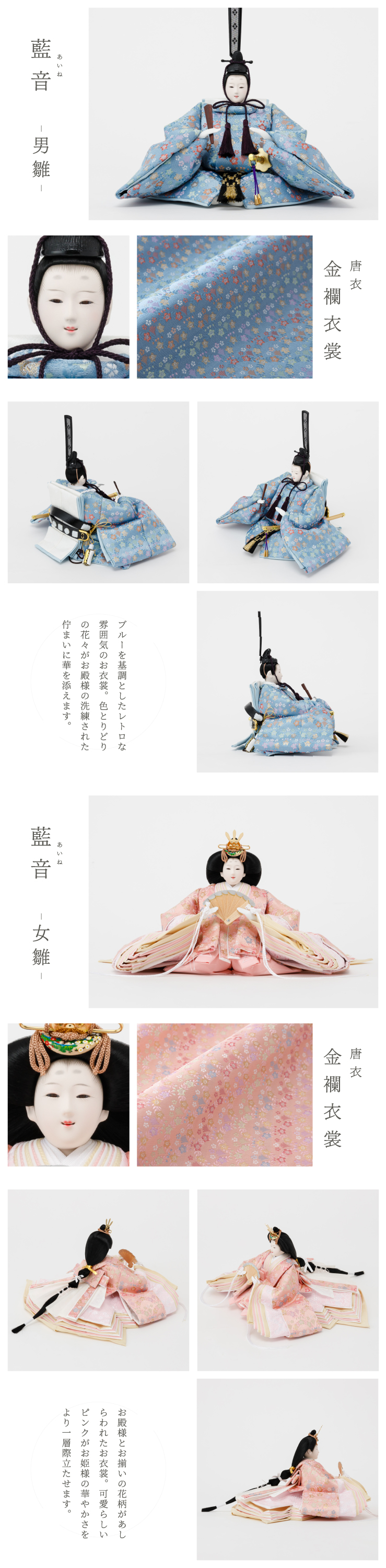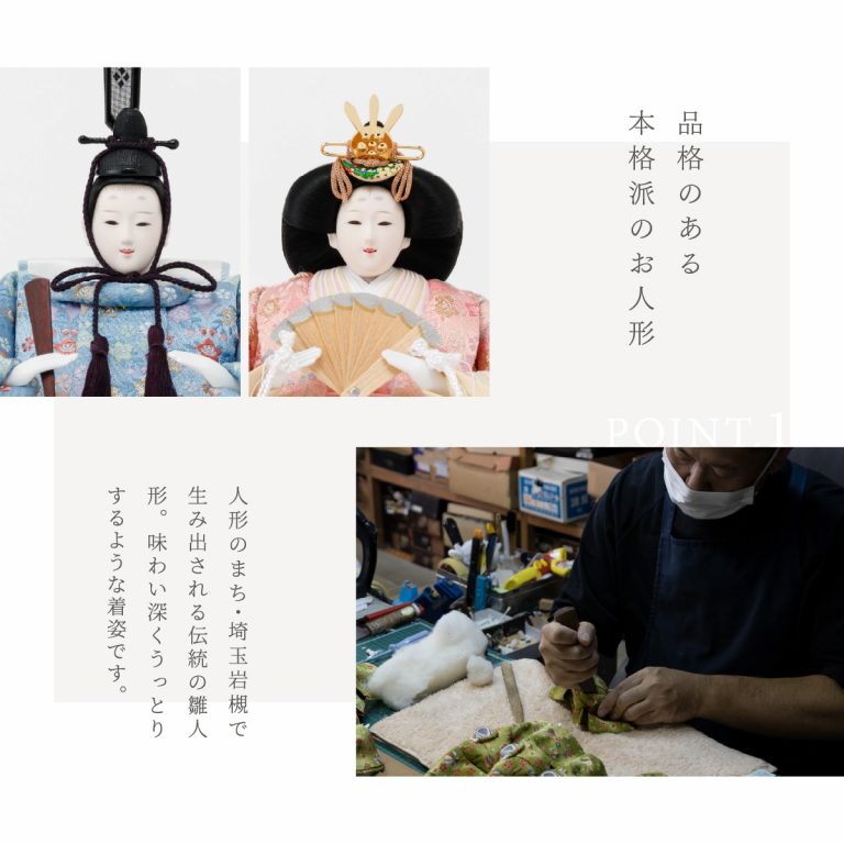 ※お人形のお顔について、左右非対称・目の形の歪み・顔の塗装の凹凸などが見受けられますが、1つ1つ職人が手作業で制作しているため、予めご了承ください。