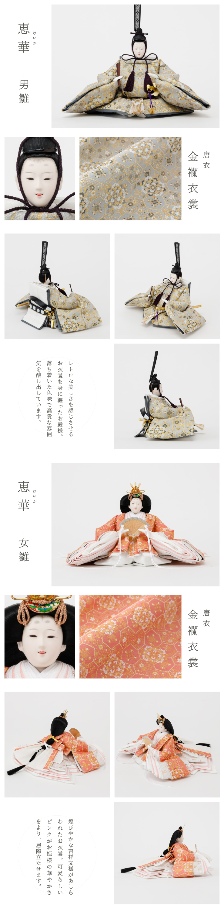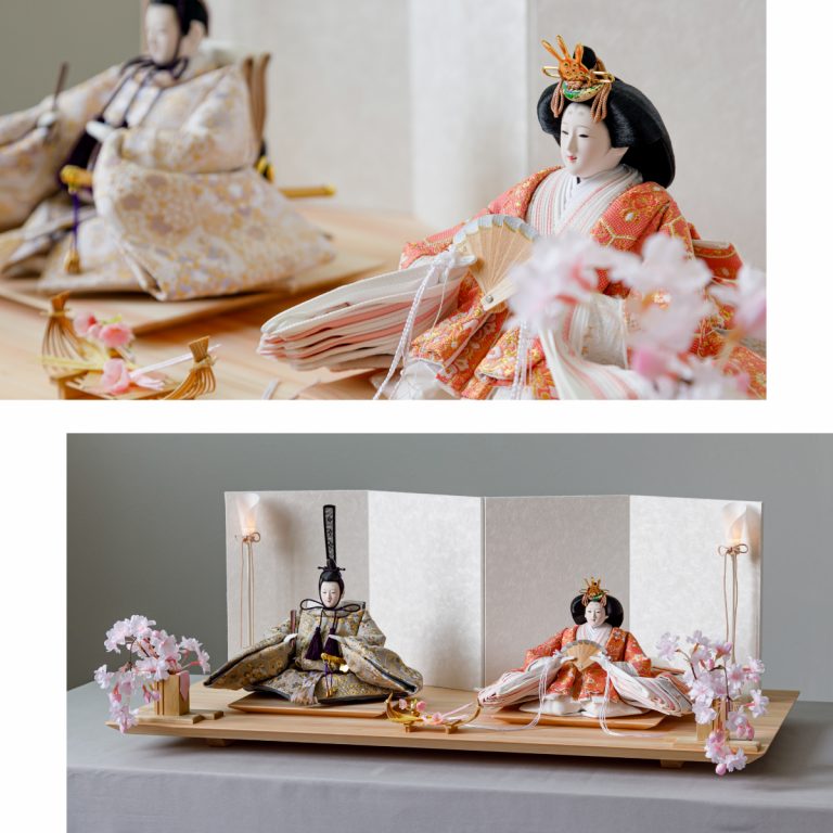 人形のお顔、飾り台、お道具まですべてにこだわり抜いて制作した、preferプロデュースの雛人形。熟練の職人たちがその技術を惜しみなく注いだ、本格派かつ高級志向のハイグレードなおひな様です。流行に左右されないシンプルモダンなスタイルのひな飾りは、時代を超えてどんな日の雛祭りにも華を添えます。衣裳着雛人形の美しい着姿を楽しめる親王飾り。かわいいお顔のお殿様とお姫様が優しく微笑みます。ゆったりとした場所で飾れるサイズ感。存在感を放ちつつインテリアのようにお部屋に溶け込みます。煌めく金糸を用いた金襴衣裳は、おめでたい日の雰囲気をいっそう盛り上げてくれるでしょう。飾り台には肌目の美しい檜(ヒノキ)の台座を使用。趣深い白の四曲屏風と共に、ひな人形のお衣裳を引き立てます。組立て不要な平飾りタイプは設置もお手軽。雛人形を照らす可愛い油灯はコードレス式。女の子の初節句のお祝いやギフトにおすすめのおひな様です。