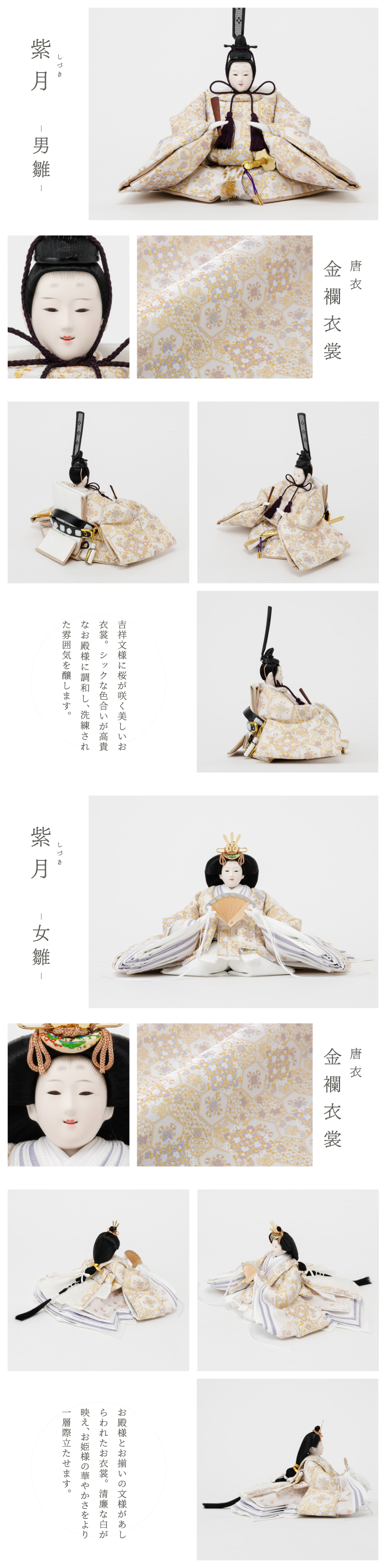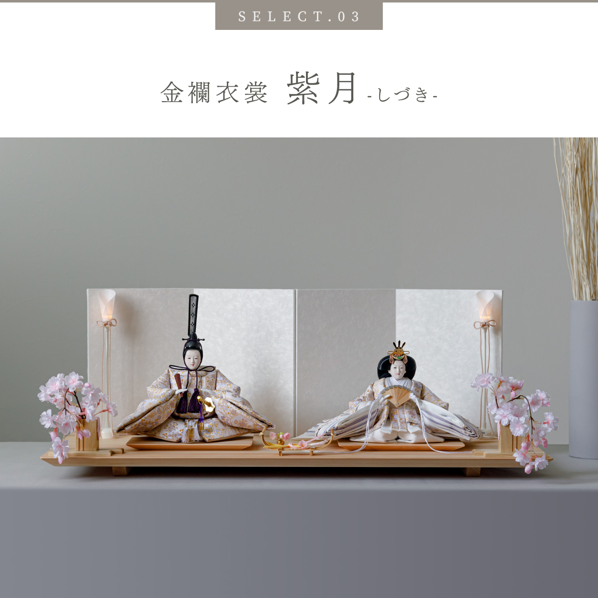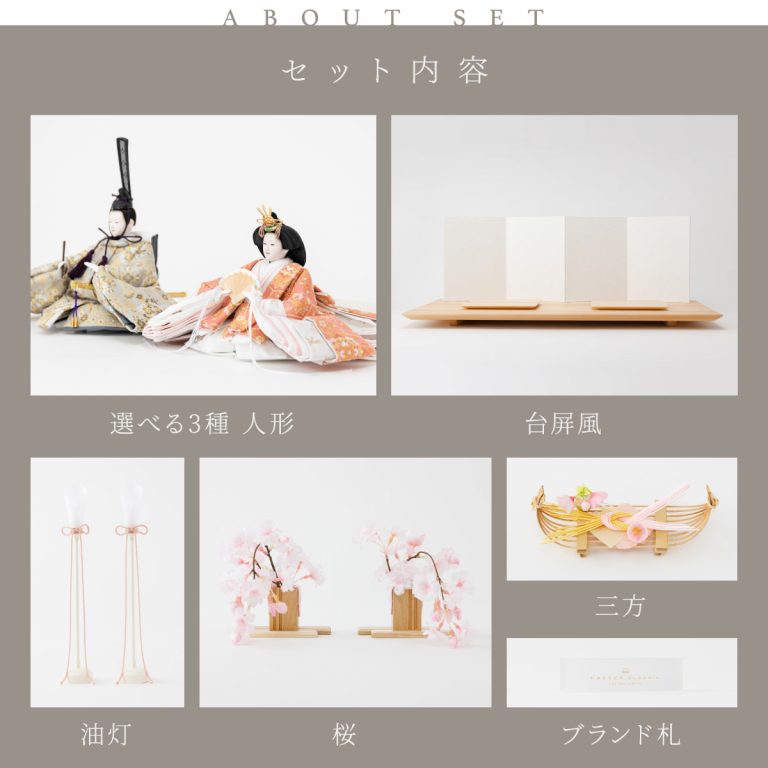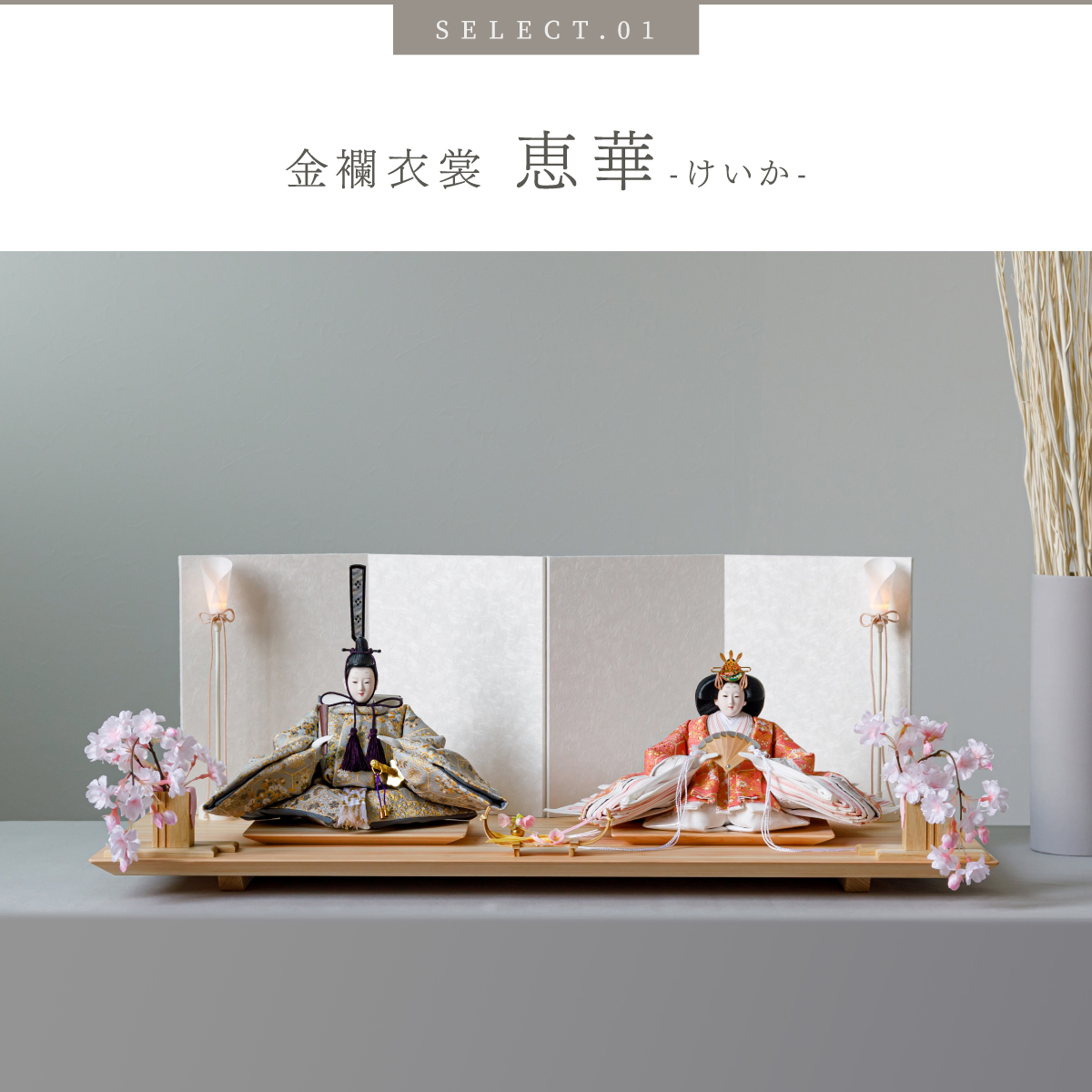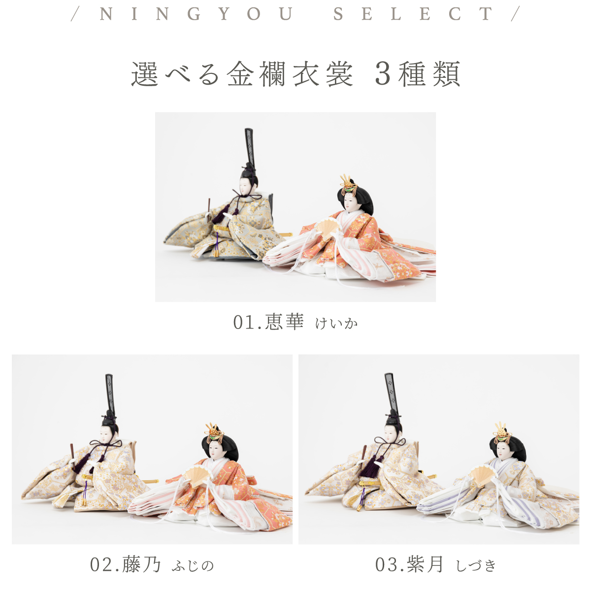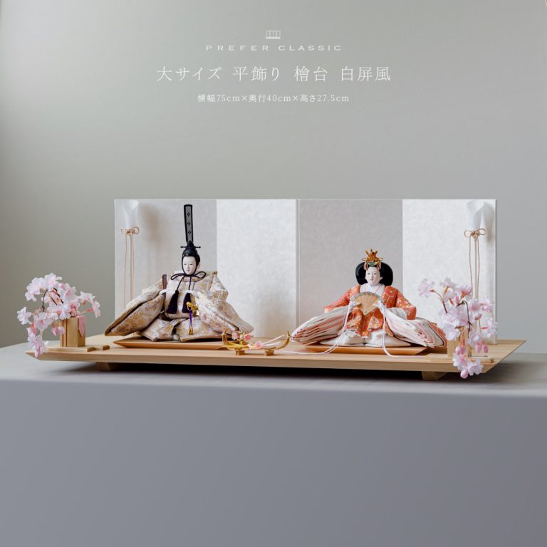 PREFER CLASSIC ひな人形 [檜台 白屏風 平飾り お道具付 しだれ桜 三方小桜 油灯 人形大サイズ 選べる金襴衣裳3種類 恵華 藤乃 紫月]