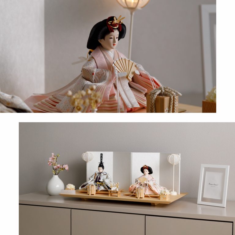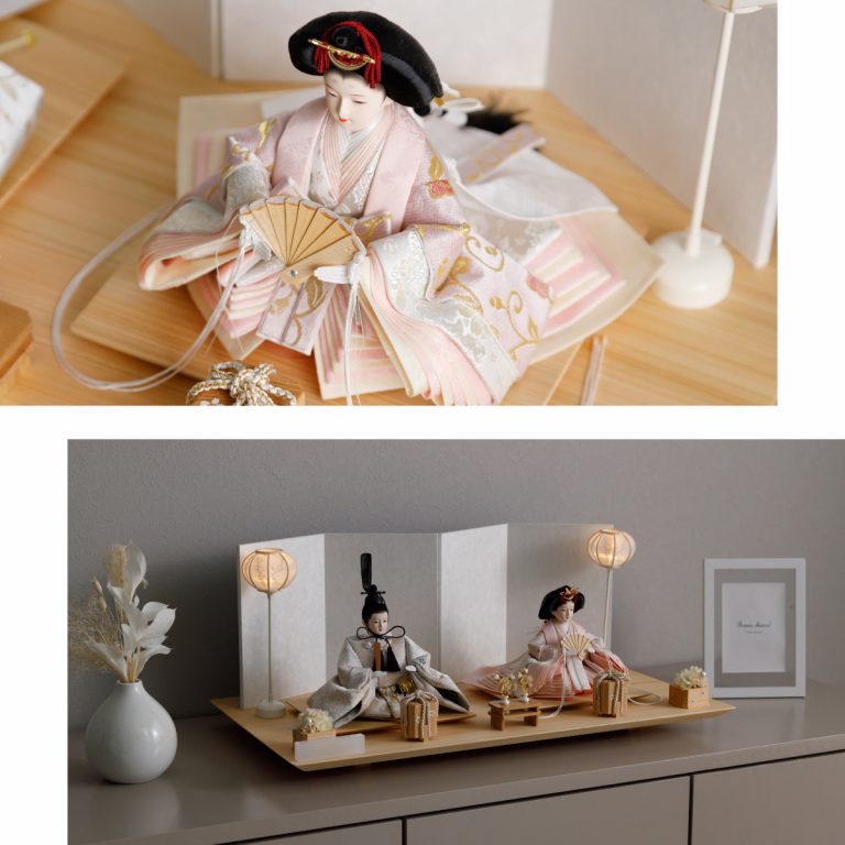 人形のお顔、飾り台、お道具まですべてにこだわり抜いて制作した、preferプロデュースの雛人形。熟練の職人たちがその技術を惜しみなく注いだ、本格派かつ高級志向のハイグレードなおひな様です。流行に左右されないシンプルモダンなスタイルのひな飾りは、時代を超えてどんな日の雛祭りにも華を添えます。衣裳着雛人形の美しい着姿を楽しめる親王飾り。かわいいお顔のお殿様とお姫様が優しく微笑みます。程よくコンパクトなサイズ感。存在感を放ちつつインテリアのようにお部屋に溶け込みます。煌めく金糸を用いた金襴衣裳は、おめでたい日の雰囲気をいっそう盛り上げてくれるでしょう。飾り台には肌目の美しい檜(ヒノキ)の台座を使用。趣深い白の四曲屏風と共に、ひな人形のお衣裳を引き立てます。組立て不要な平飾りタイプは設置もお手軽。繊細で美しいお道具もセットになり、華やかかつ豪華な雛飾りに仕上げました。可愛い雪洞はコードレスタイプです。初節句のお祝いやギフトにおすすめの、最高級の逸品です。