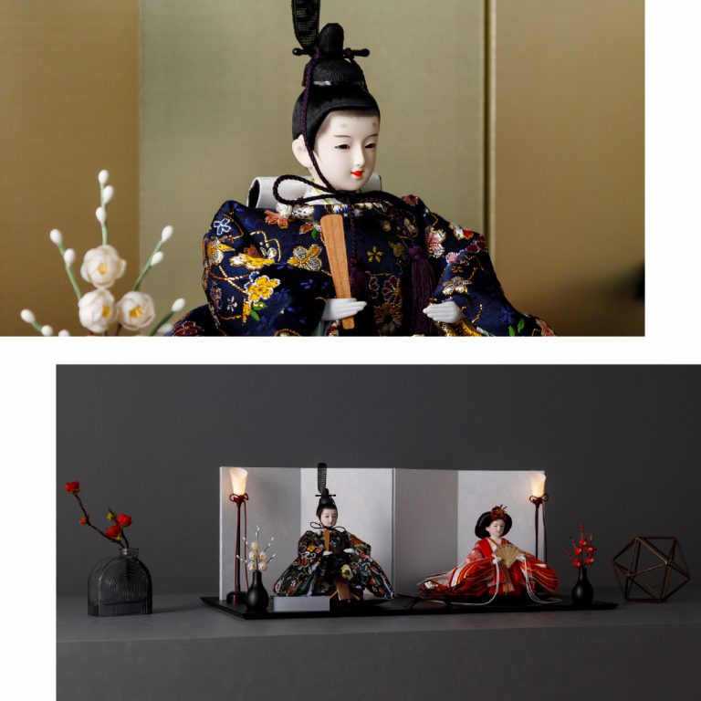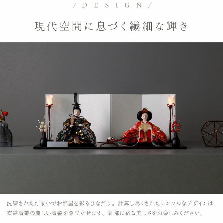 人形のお顔、飾り台、お道具まですべてにこだわり抜いて制作した、preferプロデュースの雛人形。熟練の職人たちがその技術を惜しみなく注いだ、本格派かつ高級志向のハイグレードなおひな様です。流行に左右されないシンプルモダンなスタイルのひな飾りは、時代を超えてどんな日の雛祭りにも華を添えます。衣裳着雛人形の美しい着姿を楽しめる親王飾り。かわいいお顔のお殿様とお姫様が優しく微笑みます。程よくコンパクトなサイズ感。存在感を放ちつつインテリアのようにお部屋に溶け込みます。煌めく金糸を用いた金襴衣裳は、おめでたい日の雰囲気をいっそう盛り上げてくれるでしょう。飾り台には主役のお人形が映える黒一色の台座を使用。ひな人形を引き立てる屏風は、白、金よりお選びください。平飾りタイプは組立ても不要でお手軽です。繊細で美しいお道具もセットになり、華やかかつ豪華な雛飾りに仕上げました。雛人形を照らす可愛い油灯はコードレス式。女の子の初節句のお祝いやギフトにおすすめのおひな様です。