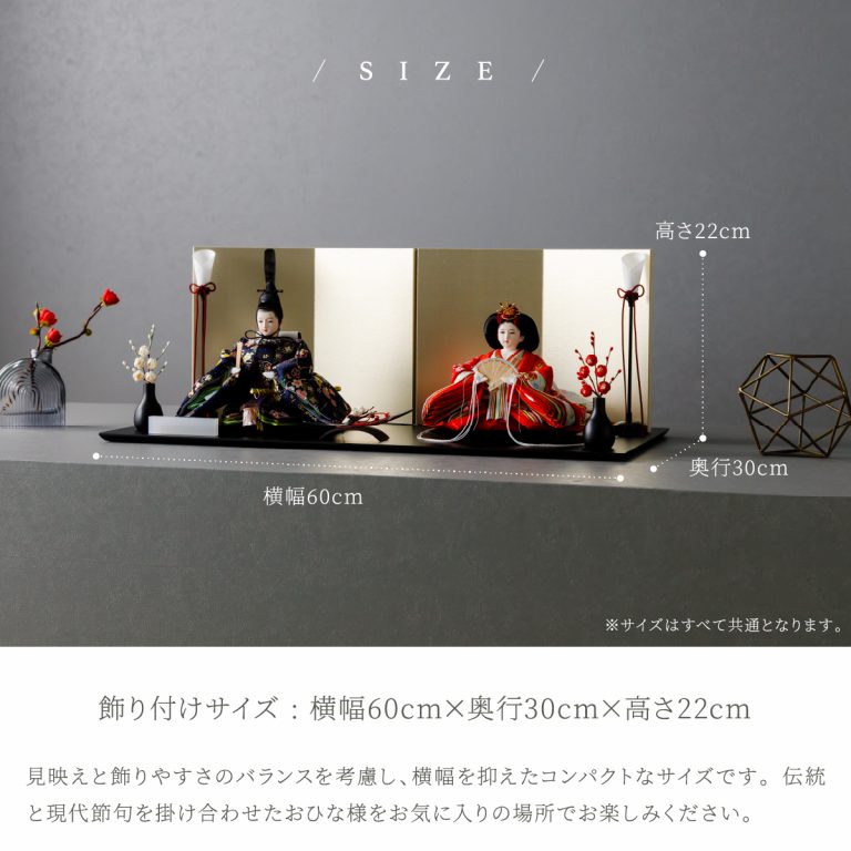 ・女雛:横幅21cm×奥行18cm×高さ14.5cm