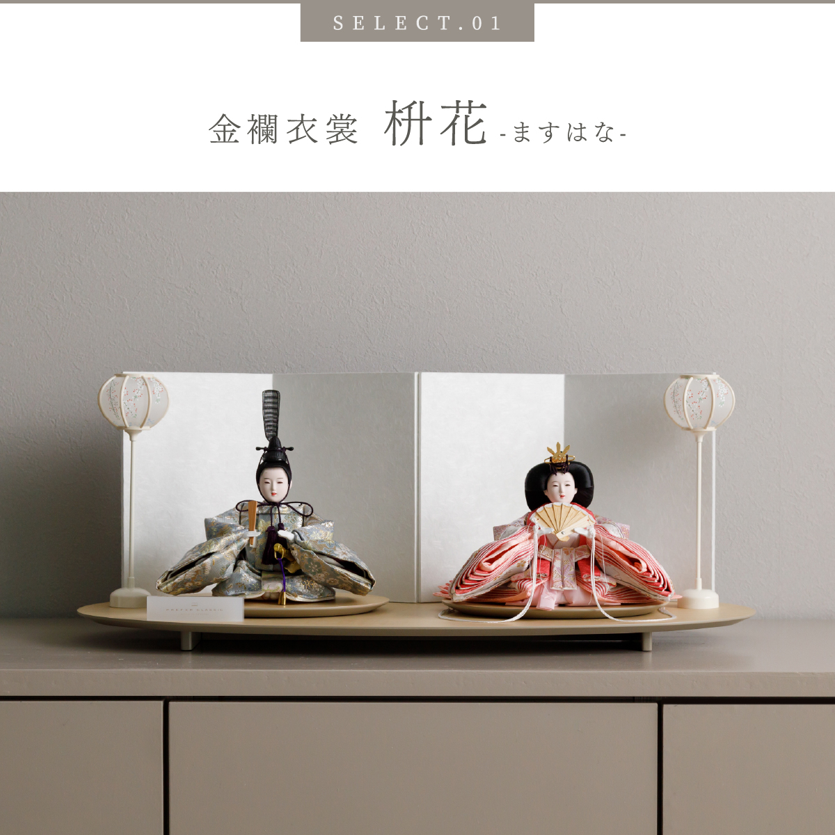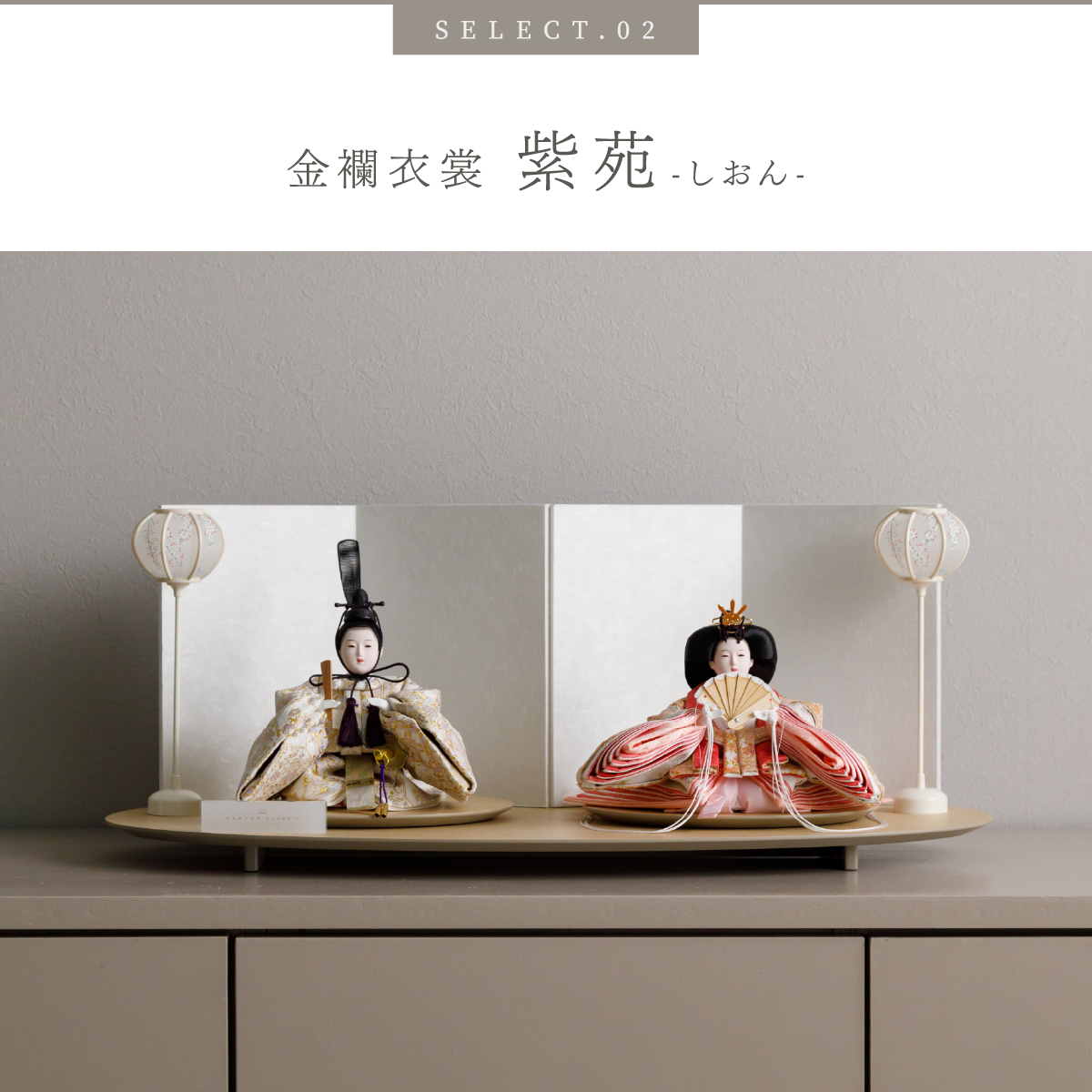 TOP > 雛人形 > ブランド > PREFER CLASSIC > PREFER CLASSIC ひな人形 [丸型台 白屏風 平飾り 雪洞 人形小サイズ 選べる金襴衣裳2種類 枡花 紫苑]
