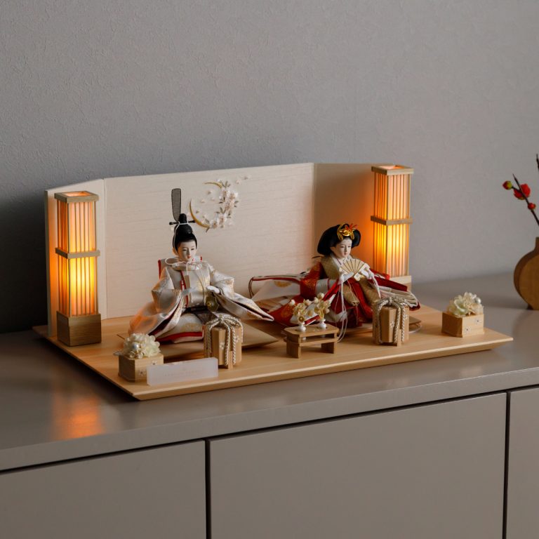 人形のお顔、飾り台、お道具まですべてにこだわり抜いて制作した、preferプロデュースの雛人形。熟練の職人たちがその技術を惜しみなく注いだ、本格派かつ高級志向のハイグレードなおひな様です。流行に左右されないシンプルモダンなスタイルのひな飾りは、時代を超えてどんな日の雛祭りにも華を添えます。衣裳着雛人形の美しい着姿を楽しめる親王飾り。かわいいお顔のお殿様とお姫様が優しく微笑みます。省スペースで楽しめる超コンパクトサイズ。存在感を放ちつつインテリアのようにお部屋に溶け込みます。高級感あふれる正絹生地のお衣裳は、おめでたい日の雰囲気をいっそう盛り上げてくれるでしょう。飾り台には肌目の美しい檜(ヒノキ)の台座を使用。繊細な刺繍を施した屏風と共に、ひな人形のお衣裳を引き立てます。平飾りタイプは組立ても不要でお手軽。繊細で美しいお道具もセットになり、華やかかつ豪華な雛飾りに仕上げました。雛人形を照らす可愛い行灯はコードレス式。女の子の初節句のお祝いやギフトにおすすめのおひな様です。