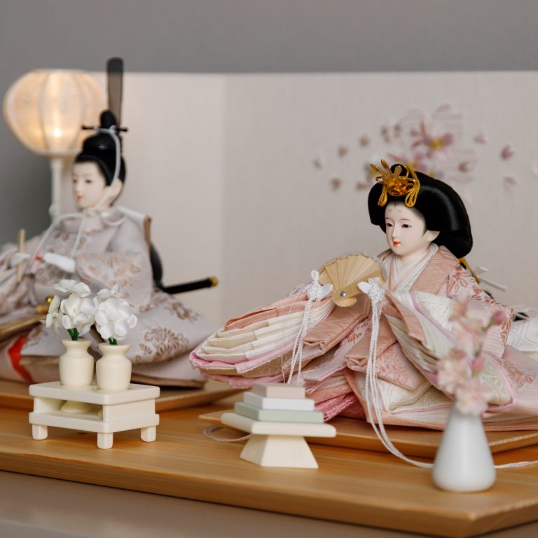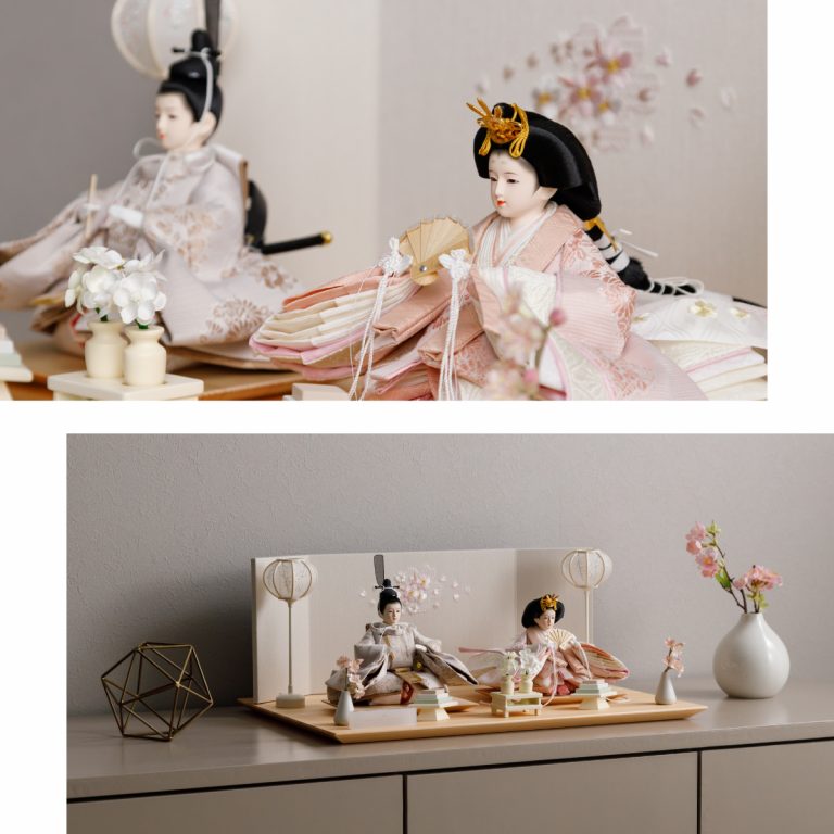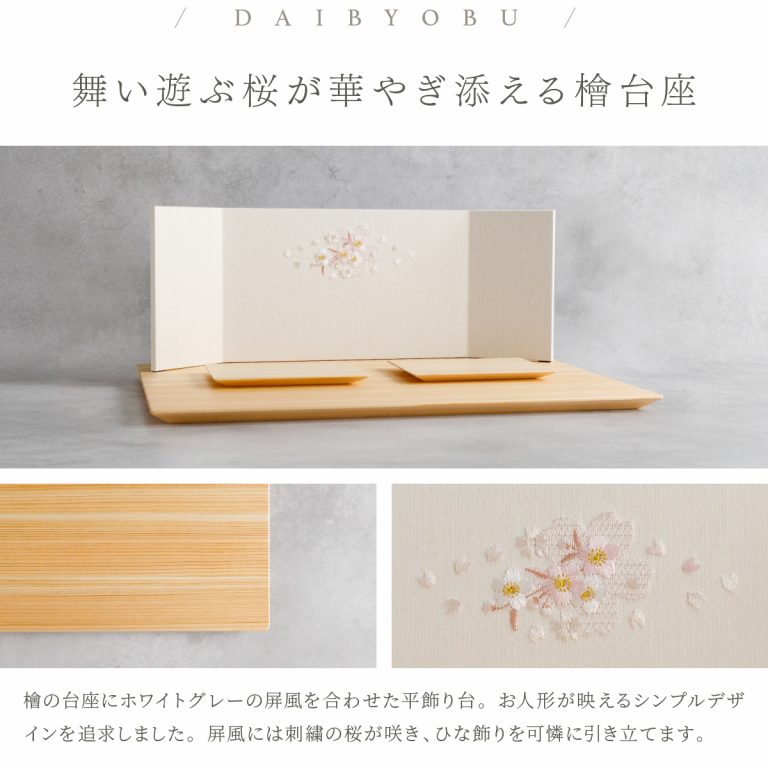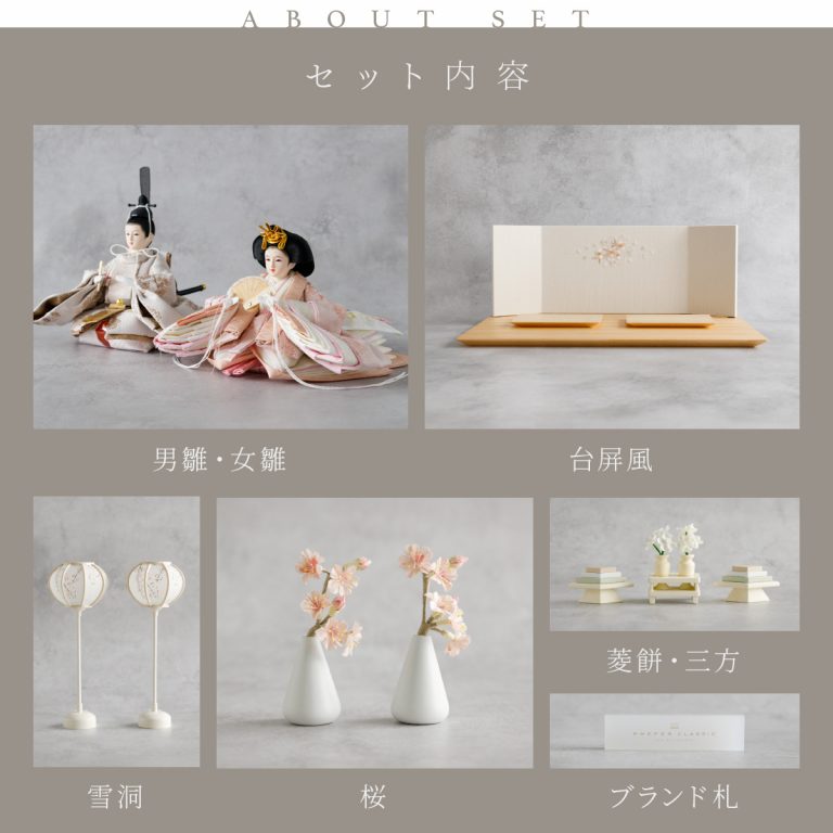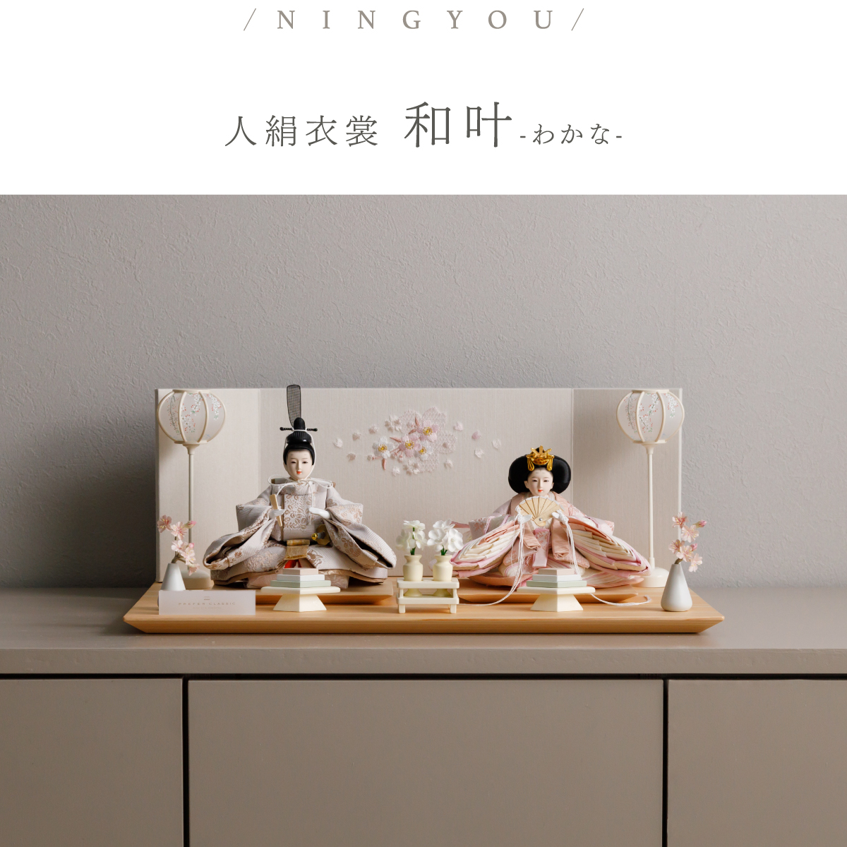 PREFER CLASSIC ひな人形 [檜台 桜霞屏風 平飾り お道具付 菱餅三方 雪洞 枝桜ピンク 人形極小サイズ 人絹衣裳 和叶]